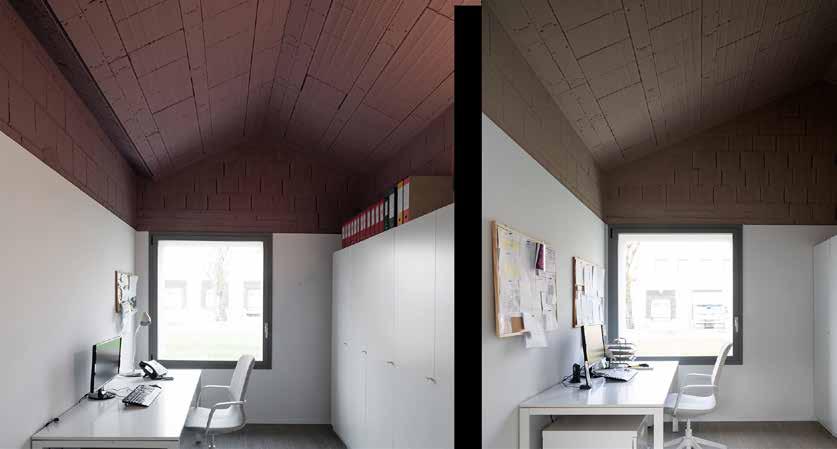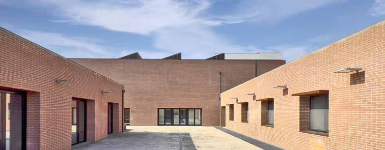 The facing brick of the facade presents an innovative decorative texture, based on the rotation of the bricks, which becomes an opportunity to make the masonry a perforated element, which lets in light and air, acting as a shield from solar radiation