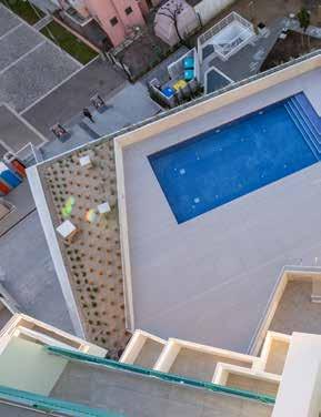 Quando si tratta di una zona esterna con piscina è fondamentale avere un adeguato sistema di drenaggio per evitare ristagni d’acqua. La realizzazione di una pavimentazione sopraelevata consente un corretto deflusso, garantendo che l’acqua piovana o quella della piscina vengano drenate in modo efficiente. Ciò aiuta a prevenire problemi come la formazione di pericolose pozzanghere e ristagni d’acqua, e l’accumulo di umidità che potrebbe danneggiare la pavimentazione o l’area circostante. Grande flessibilità, infine, nella scelta dei materiali per la superficie del pavimento. Le pavimentazio-