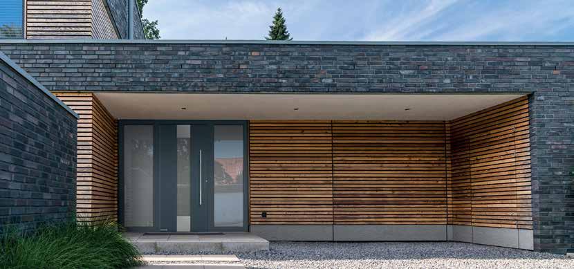 ne leggera, ThermoCarbon può in più incrementare significativamente il valore energetico dell’immobile: presenta infatti un valore di trasmittanza termica fino a 0,47 W/ (m²xK) ed è per questo la soluzione ideale non solo per edifici residenziali che mirino a un ottimale comfort termico, ma addirittura per le case passive e a bilancio energetico positivo che producono più energia di quanta ne utilizzino. Questo elevato isolamento è reso possibile dal battente in alluminio a filo della superficie spesso 100 mm, dotato di un pannello di riempimento in schiuma rigida in poliuretano a piena superficie e di un profilo composito alloggiato all’interno. Soluzione tecnologicamente avanzata, questa porta Hörmann è all’avanguardia anche in termini di comfort: può essere infatti non solo dotata di motorizzazione con tecnologia d’avanguardia BiSecur – sistema che utilizza una codifica estremamente sicura, Aes 128, impiegata, ad esempio, per l’online banking – ma anche aperta in modo smart, tramite inserimento di codice, lettore di impronte digitali o smartphone.