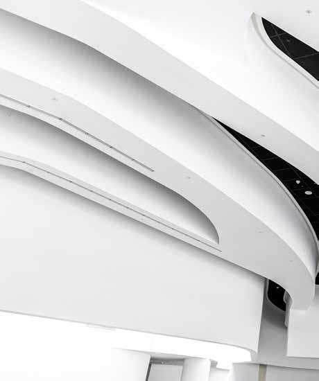 lavorabili e plasmabili grazie al loro ridotto spessore: ciò ha permesso di ottenere le peculiari soluzioni architettoniche richieste, basate sull’alternanza di superfici fonoassorbenti, vuoti e curvature irregolari perfettamente integrate con i sistemi di illuminazione previsti in progetto.