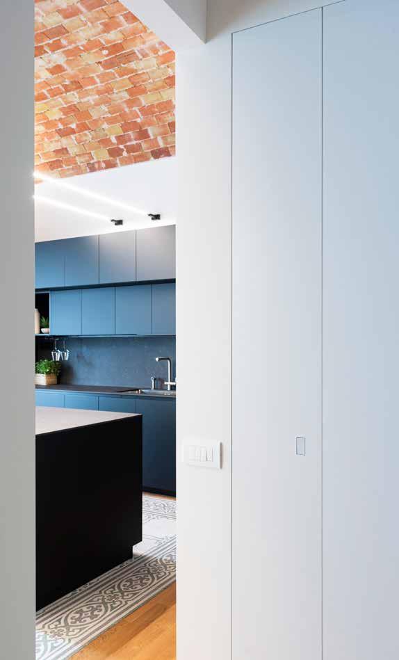 New Space Raso Muro è il controtelaio che consente di mimetizzare la porta scorrevole nella parete, uniformandola perfettamente con il muro.