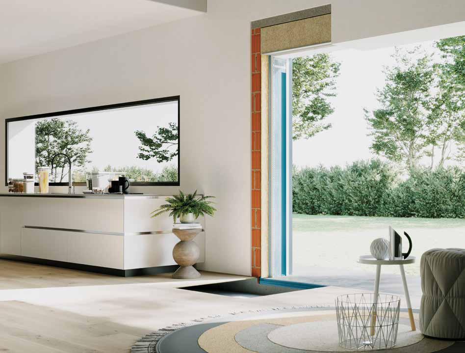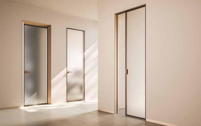 Il telaio in alluminio, infatti, non prevede finiture a vista quali stipiti e cornici coprifilo, ed è quindi particolarmente indicato per ambienti dal design moderno e minimale.