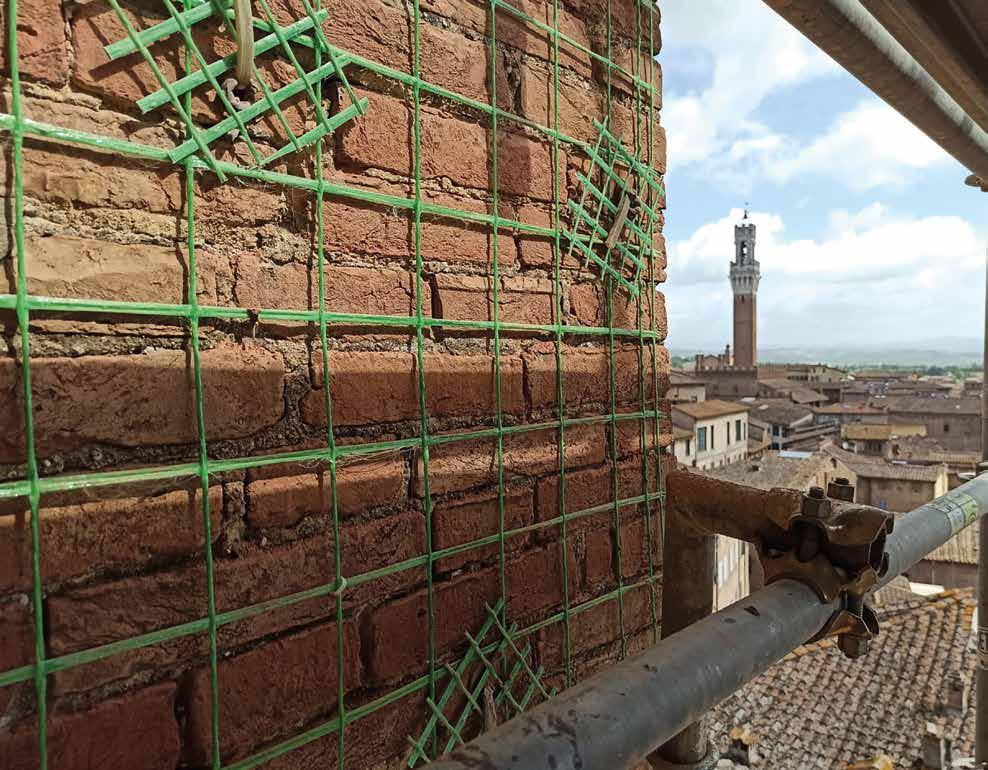 Le soluzioni G&P Intech per il rinforzo strutturale antisismico di pannelli murari sono destinate a opere antiribalta con reti in basalto alcali resistenti B-Net 250 Ba e B-Net 450 Ba. Si utilizzano con malte in calce idraulica naturale Nhl 5,0 in classe M15 Limecrete (linea Frcm) e rasanti (linea Stg) a basso spessore Rasedil As in Classe R2. Per migliorare l’ancoraggio delle reti al supporto, il gruppo G&P Intech propone soluzioni differenti, tra cui barre elicoidali in acciaio inox Steel Anchorfix installate a secco e connettori a fiocco in fibra di vetro GFix, oppure in fibra di basalto BFix inghisati, con resine epossidiche bicomponenti.