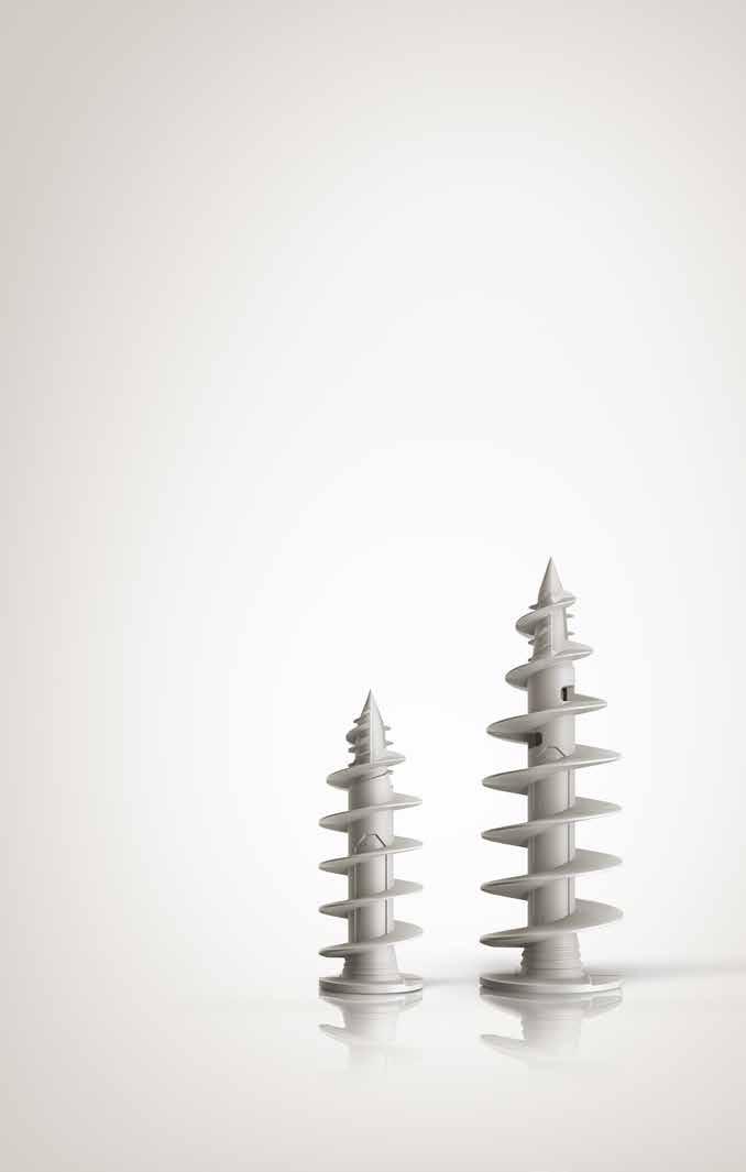 Tassello per il fissaggio senza ponte termico di carichi leggeri su facciate con isolamento a cappotto. E' studiato per il fissaggio su pannelli isolanti con rasatura, o senza rasatura, di oggetti leggeri