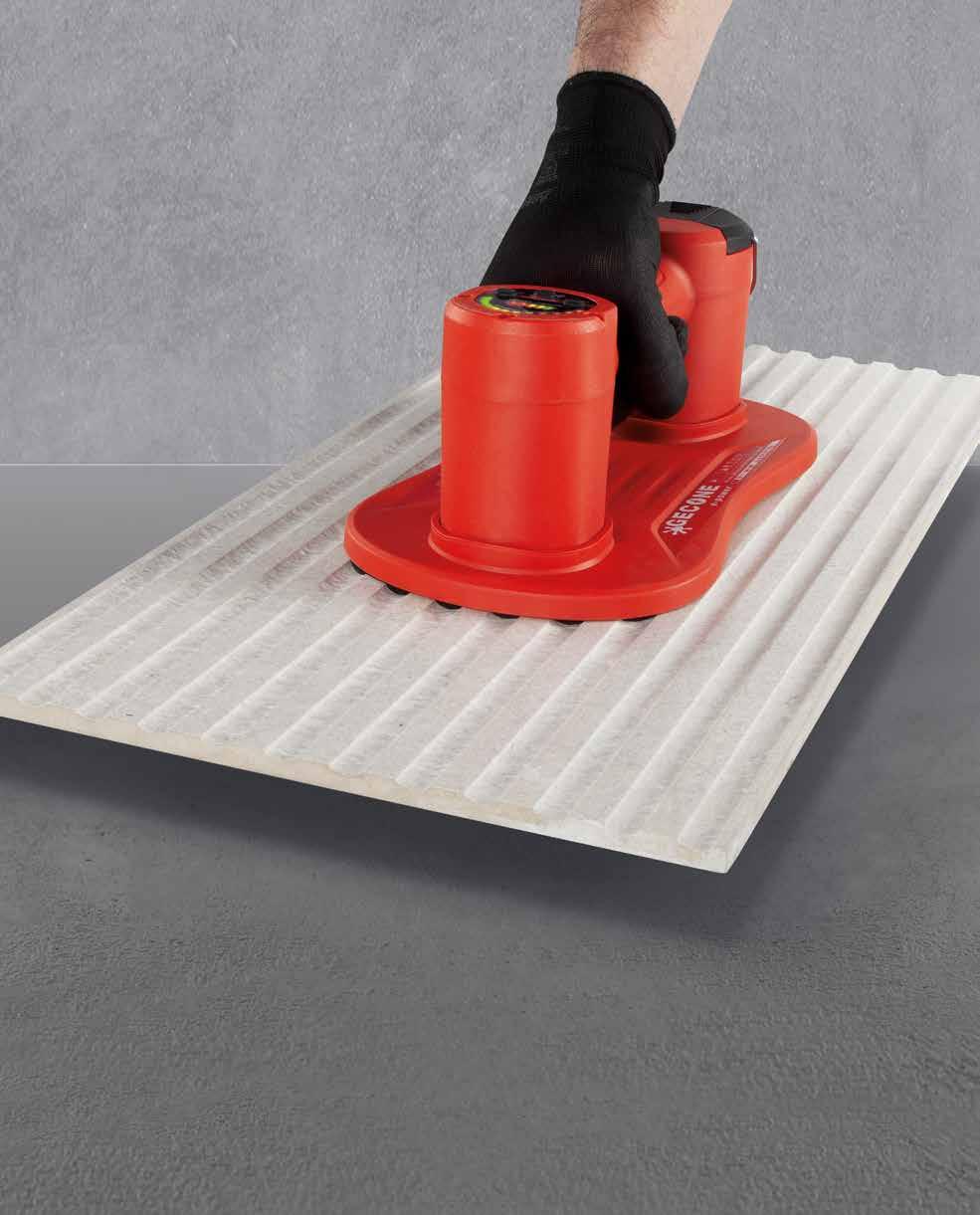 La fratazzatrice elettrica monofase a corrente continua Rev 4 di Revelin, dal 1982, si è evoluta per essere utilizzata anche con intonaci grezzi e fini. Vanta da allora vari brevetti e offre la possibilità di lavorazione dei soffitti con un apposito supporto, anch’esso ideato e brevettato da Revelin. Inoltre, evidenzia caratteristiche produttive irraggiungibili manualmente. L’uso appropriato della fratazzatrice garantisce una lavorazione di oltre 50 mq all’ora. Ha un cavo motore da 20 metri, mentre gli accessori per la raschiatura e la carteggiatura di tinte sono forniti su richiesta. Revelin offre la possibilità di adeguamento della macchina a qualsiasi tipo di parete. Un’altra caratteristica: la rotazione del piatto porta fratazzi è stata studiata in maniera che il suo utilizzo garantisca la massima produttività e la minima rottura. Il senso di rotazione permette la diminuzione effettiva del peso del gruppo a contatto con l’intonaco.