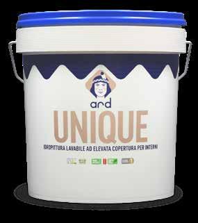 Unique è un’idropittura lavabile inodore a elevata copertura, dedicata agli ambienti interni. Con una classe 1 di copertura secondo normativa En 13300, si distingue per l’elevato potere coprente ed è studiata per la cantieristica, soprattutto grazie alla rapidità di applicazione: permette di ottenere finiture uniformi anche a mano unica, a beneficio del time management. Unique è un prodotto professionale versatile, adatto alla tinteggiatura di supporti d’arredo in cartongesso. Il valore aggiunto è la possibilità di un’applicazione diretta senza l’utilizzo di un primer di preparazione, snellendo le fasi di lavoro. La finitura garantisce ambienti salubri, poiché è esente da formaldeide e comporta basse emissioni di sostanze dannose per l’uomo e l’ambiente (classe A+). Inoltre, è conforme ai requisiti Cam. Dall’ottimo punto di bianco, restituisce piacevoli finiture opache.
