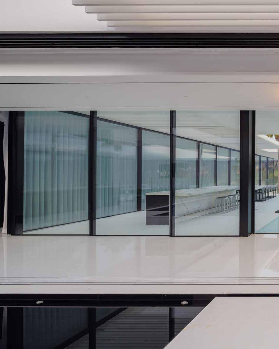 Una serie di vetrate scorrevoli a tutta altezza enfatizzano la fluidità degli spazi, permettendo alle varie sezioni di integrarsi con la zona piscina, il giardino zen e i vari patii semicoperti che definiscono la composizione dell’edificio. L’interior designer portoghese Ines Fraga è stata incaricata di creare l’intero lay out, con un’attenzione particolare all’ingresso, dove il cliente desiderava un’illuminazione classica italiana che lo trasformasse in un elemento sorprendente, simile a un gioiello, che fonde l’eleganza tradizionale con la semplicità moderna. In questa cornice total white, senza altri punti luce decorativi, spicca il masterpiece firmato Italamp: la plafoniera che colpisce per la sua eleganza e per la capacità di trasformare gli spazi con una luce avvolgente e suggestiva. Vera e propria scultura realizzata con 130 foglie di vetro color oro, vanta un diametro di oltre 2 metri e fa parte della prestigiosa linea Heritage, che include collezioni studiate per interpretare i trend più attuali d’interior. A rendere ancora più sorprendente l’impatto estetico è la particolare modalità di aggancio al soffitto, che regala un’inaspettata tridimensionalità e dinamismo alla composizione. Il nuovo progetto conferma l’impegno di Italamp nell’offrire soluzioni di altissimo pregio per le più esclusive destinazioni residenziali, oltre che contract, attraverso il perfetto connubio tra tecniche artigianali, design e lavorazioni esclusive.