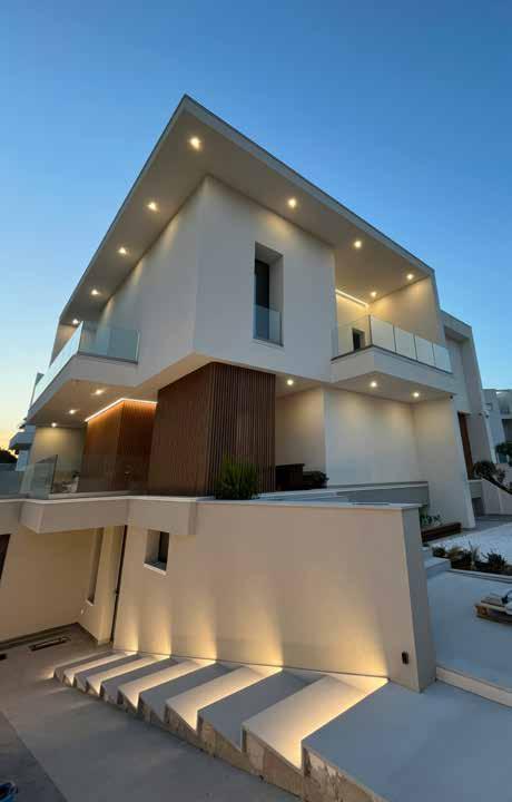 Per l’esterno Eleni Lighting propone invece cornici segna-passi e cornici decorative predisposte per l’illuminazione a Led, in Eps rifinito con resina acrilica. Pensati specificatamente per gli ambienti esterni sono composti da una struttura che crea una lama di luce che si proietta sul perimetro inferiore della parete esterna di abitazioni o di garage, e che permette di illuminare il percorso di camminamento. Con i decori da esterno, sempre realizzati su misura in Eps, il progettista ha la possibilità di illuminare lo spazio con una luce radente e sfumata. In aggiunta, la cornice sottogronda può essere resa invisibile grazie a trattamenti di rasatura e pittura. Questa soluzione è ideale per esaltare i particolari architettonici di strutture antiche e moderne o per creare un ambiente adeguato ad aree relax, come terrazze e dehors. Oltre all’adattabilità e alla funzionalità, le cornici Eleni Lighting sono facili e veloci da montare e installare. Le operazioni di messa in opera sono agevolate dalla modularità e dalla perfetta planarità degli elementi che, una volta posati e rasati possono essere tinteggiati a piacere facilitando il mimetismo ed esaltando pienamente la luce.