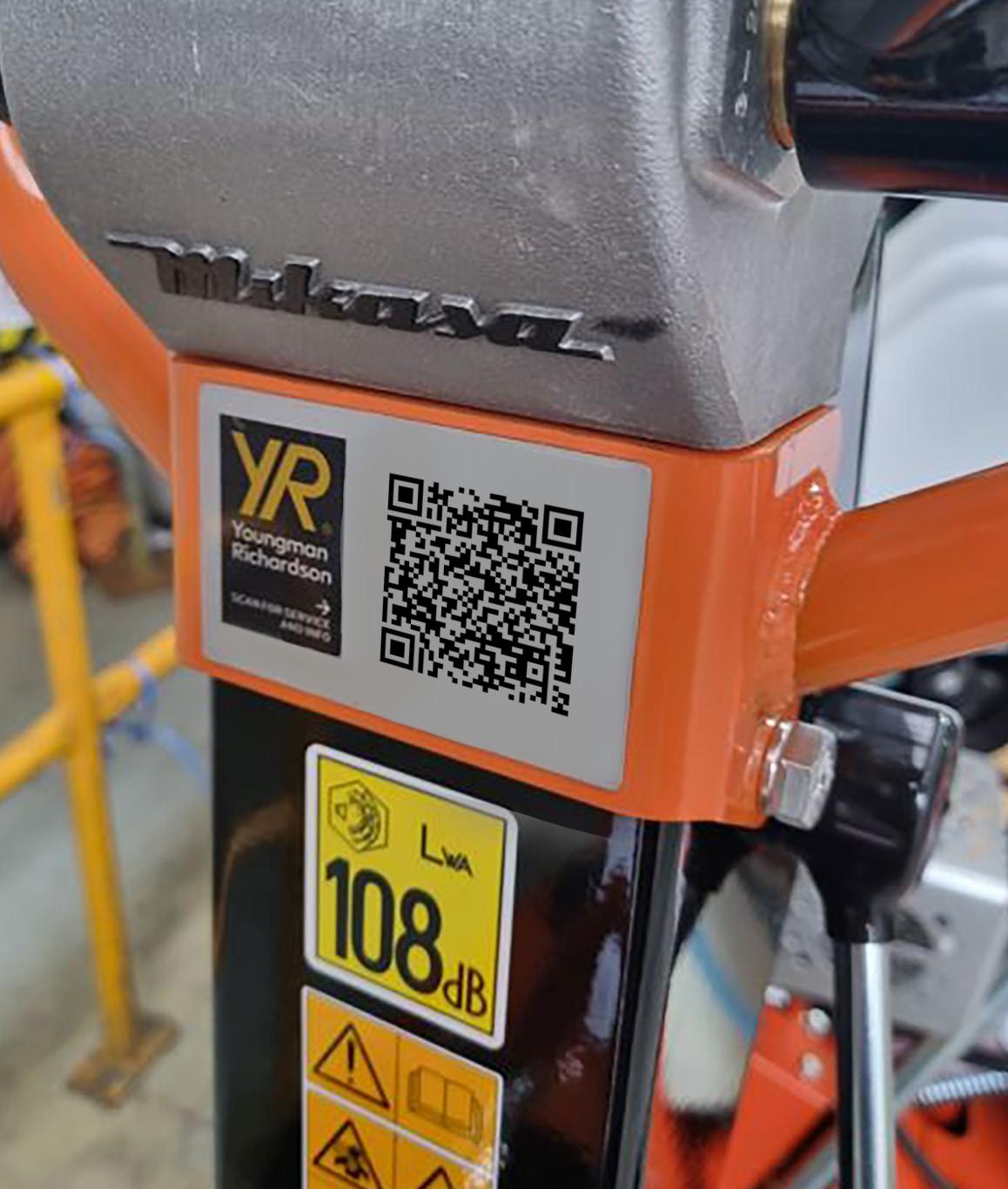 Equipment is fitted with a unique QR code that links a particular unit’s details with information specific to that serial number and your After Sales Support programme (model dependent). i.e. warranty registration, product specification, familiarisation form, operators manual, parts manual, service manual and service history.
