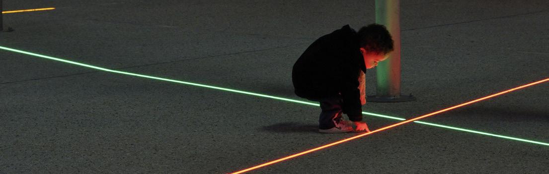 LED LIGHTING ON OR WITHIN THE TRACK COULD BE A VERY ENGAGING ELEMENT ON THE TRACK. THIS COULD BE A SERIES OF LIGHTS THAT ARE ACTIVATED AS A RIDER GOES BY AND FADES OUT OVER THE NEXT SECOND OR TWO. THE RIDER WOULD HAVE A TAIL OF LIGHT.