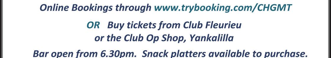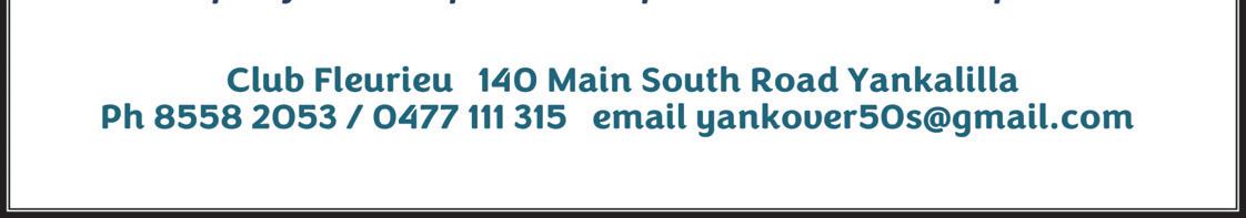 TICKETS: $10 PER ADULT. CHILDREN UNDER 12 FREE AVAILABLE FROM FLEURIEU COAST VISITOR CENTRE P: 8558 0240 / E: cooee@yankalilla.sa.gov.au