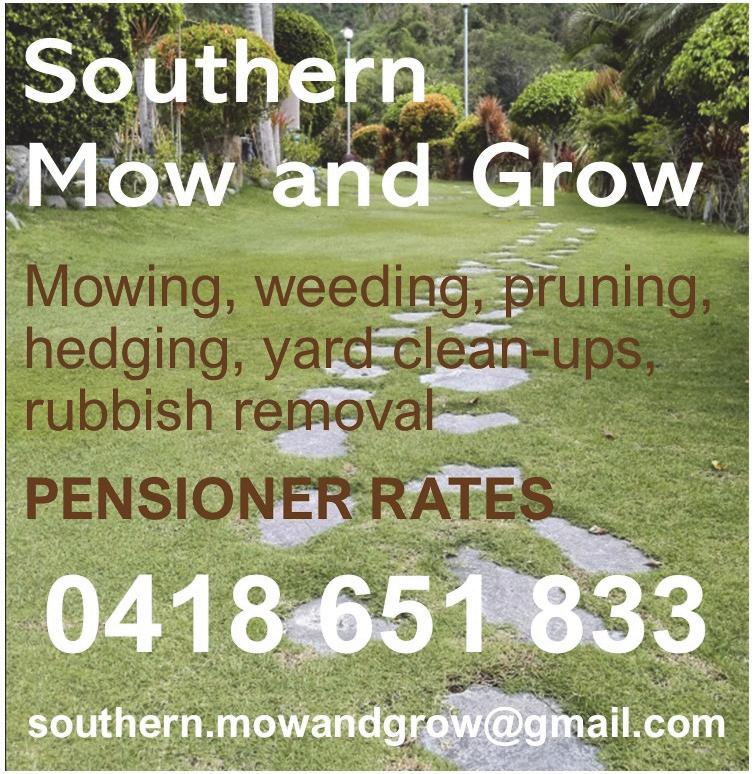 Normanville Earthmoving Post Holes, Driveways, Drainage, Trenches, Pads. Tight Access, Retaining wall, Paving, Landscape Preparation. Luke 0439 812 846 Ph 0429 954 125 Curtis Wilson www.southernoceanconstruction.com TREE FELLING & LOPPING ● Free Quotes ● 25+ years experience ● Competitive pricing ● Fully Insured Call Geoff – 0411.117.113 (Saw-miller to the Governor)