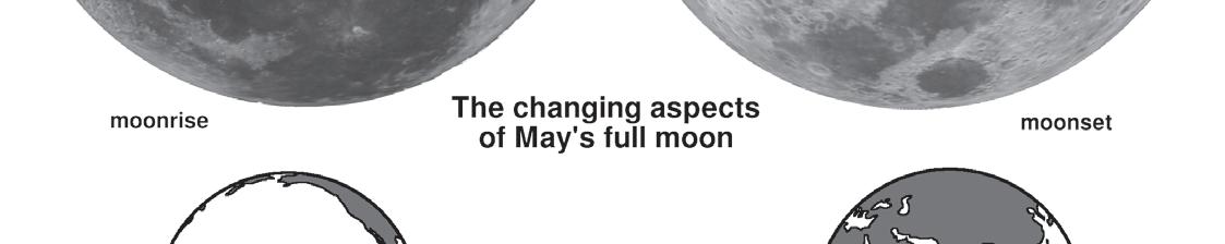 Saturn rises about 1am on May 1 but becomes an evening planet by the end of May, rising shortly before midnight on May 31. The Moon passes near Saturn on May 14, near Mercury & Jupiter on May 18, near Venus on May 23 and near Mars on May 24 & 25.