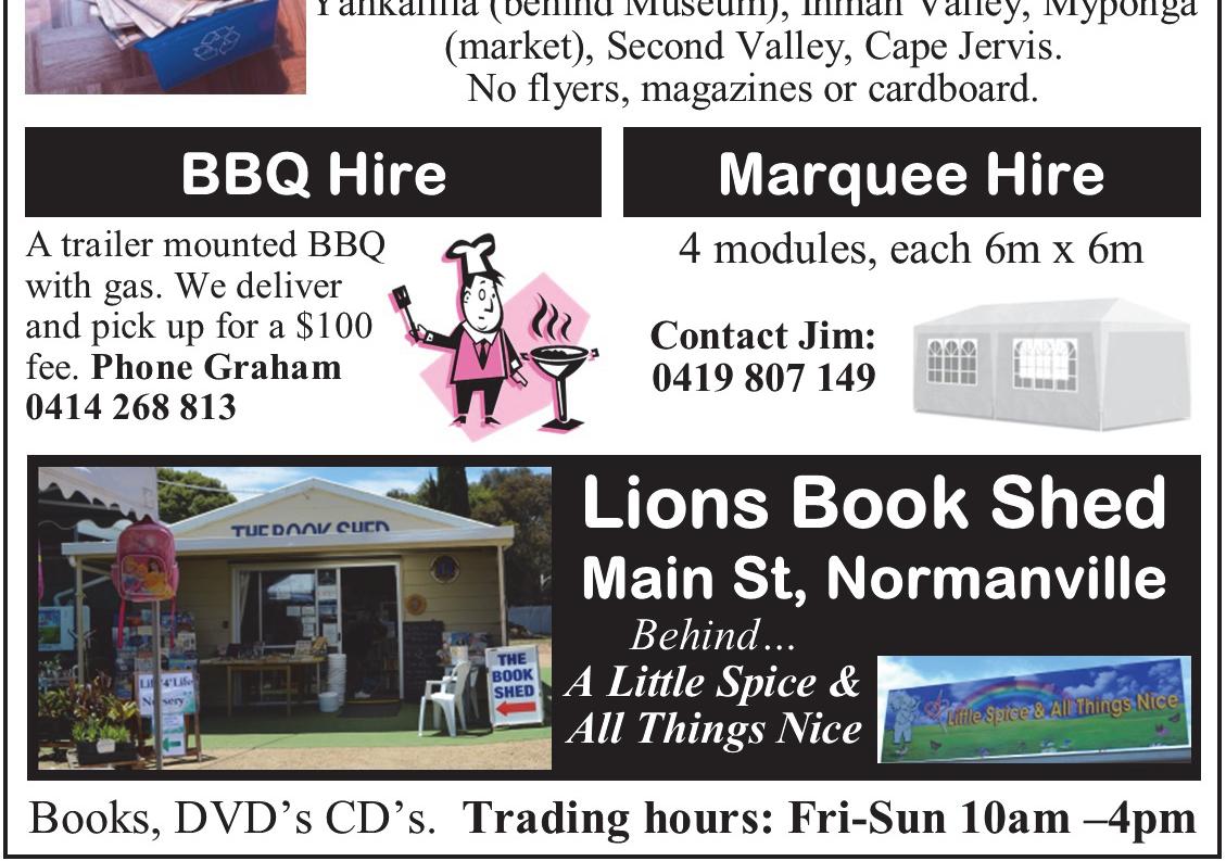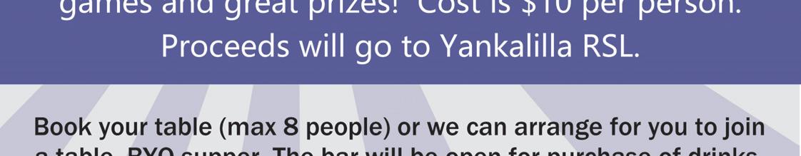 COPYRIGHT © The Yankalilla Regional News 1970-2023. Reproduction of any part of this magazine is prohibited unless permission is given by the copyright owner. The Yankalilla Regional News does not endorse, accept responsibility for, or necessarily agree with items or advertisements submitted for publication by others. Items submitted may be subjected to editing at the discretion of the editors.