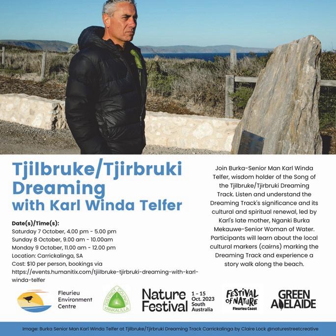 Animals, Birds, Farming, Environment, Nature: Animal & Bird Rescue services 34 Astronomy - The Night Shift at The Backyard Universe 28 Fleurieu Environment CentreNormanville 18-20 Friends of Bungala River 10 Local Science with Rob Kirk 25 Pretty Fishes of Yankalilla Bay 31 Arts, Entertainment, Food, Music: Art Grants 8 Books and Words Group 20 Club Fleurieu 6 Exhibition by local artists 5 Festival Fleurieu Choir 16 Lady Bay Resort 11 Markets & Sales - Normanville Farmers Market 9 Markets & Sales - Second Valley Community Market 8 Markets & Sales - Yankalilla Market 9 Music - Granite Concert Band 16 Music - Ultimate Distraction 16 Portrait of Paul Jelfs, a musical graphic artist 30 Quiz Night - Club Fleurieu 6 Quiz Night - Granite Concert Band 16 Radio - Fleurieu FM 10 Radio - Radio 876 Normanville 7 Southern Fleurieu Film Society 7 Swingin Jazz 5 Yankalilla Show 8-9 Yankalilla Youth Theatre 26 Clubs & Groups: Fleurieu Refugee Support Group32 Lions - Yankalilla & Districts 14-15 Men’s Shed Yankalilla 21 Probus - Yankalilla Ladies 16 Probus - Yankalilla Men’s 29 Red Cross Yankalilla Branch 10 Health & Wellbeing: parkrun Myponga Reservoir 35 Heritage & History: Heritage Fleurieu Coast Festival 2024 10 Historical Society: Local History 22 Other News: Grant May eld 1933-2023 13 Last chance to see hidden art 17 Normanville NYE Pageant 3 Rapid Bay School 12 Religious - Christ ChurchYankalilla 32 Religious - St James at Delamere 34 Yankalilla Memorial Park 34 Sports & Recreation: Cricket - Rapid Bay Cricket Club 2 Cricket - Yankalilla Cricket Club 2 Golf - Wirrina 2 Hockey - Yankalilla Hockey Club 34 Tennis - Inman Valley 3 Regular Items Advertisers Index 4 Cover photo details 2 Classi ed Adverts 24 Discussions, Letters, Opinions, Photos & Poetry 12,13,33 Editors notes 4 Second Valley Normanville Yankalilla Carrickalinga Myponga Rapid Bay Delamere Cape Jervis Your local electrician based in Second Valley servicing... WALLIS ELECTRICAL rjwallis@bigpond.com.au Electrical Licence: PGE143260 GOOD GROUNDS COMPANY Proudly Fleurieu Local Caleb Collins 0435 144 164 caleb@goodgroundscompany.com.au Lawn Mowing Slashing Hedge Trimming Yard Cleanups Weeding General Gardening Gutter Cleaning Lawn Care Lawn Repair
