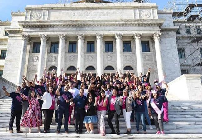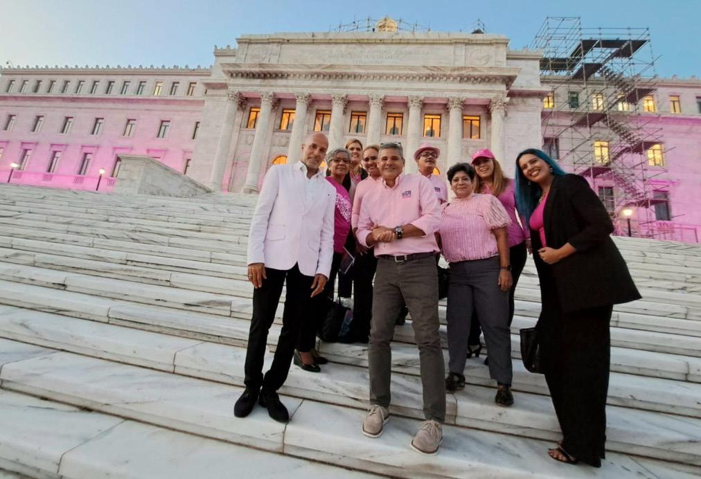 Epoderadas Contra el Cáncer quienes con sus fondos apoyan a estos, fuimos parte de la apertura de una exposición, llamada “DNA 205” de la jovencita Fabiola Esteisy Báez, dónde compartimos momentos emocionantes, esta exposición lleva un mensaje para crear conciencia sobre el cáncer de seno, luego en la noche, nos esperaban en las escaleras del lado sur y fuimos testigos del encendido ROSA de la Casa de las Leyes. “