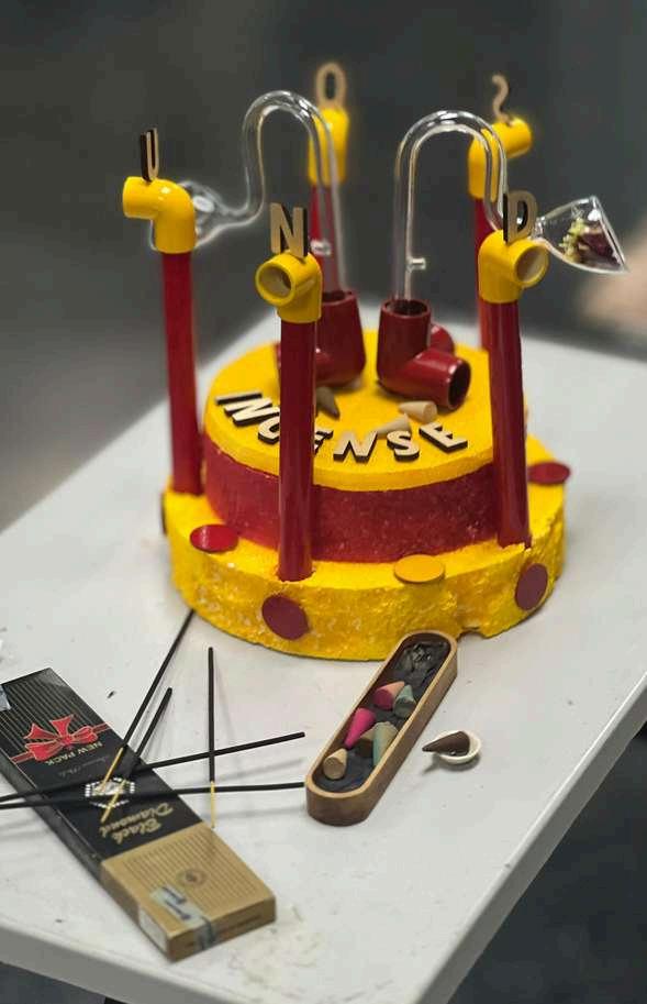 To enhance the display, I incorporated pipes and incense, showcasing the model’s features and activities. On the board, I highlighted the characteristics of each area by cutting out layers to represent both the incense-related elements and their functionalities.