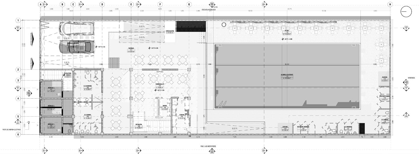· Rehabilitate the pool and integrate complementary areas such as changing rooms, bathrooms and showers.