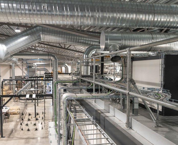 och manuell pulverlackering, blästring, zink-manganfosfatering och ED-lackering.