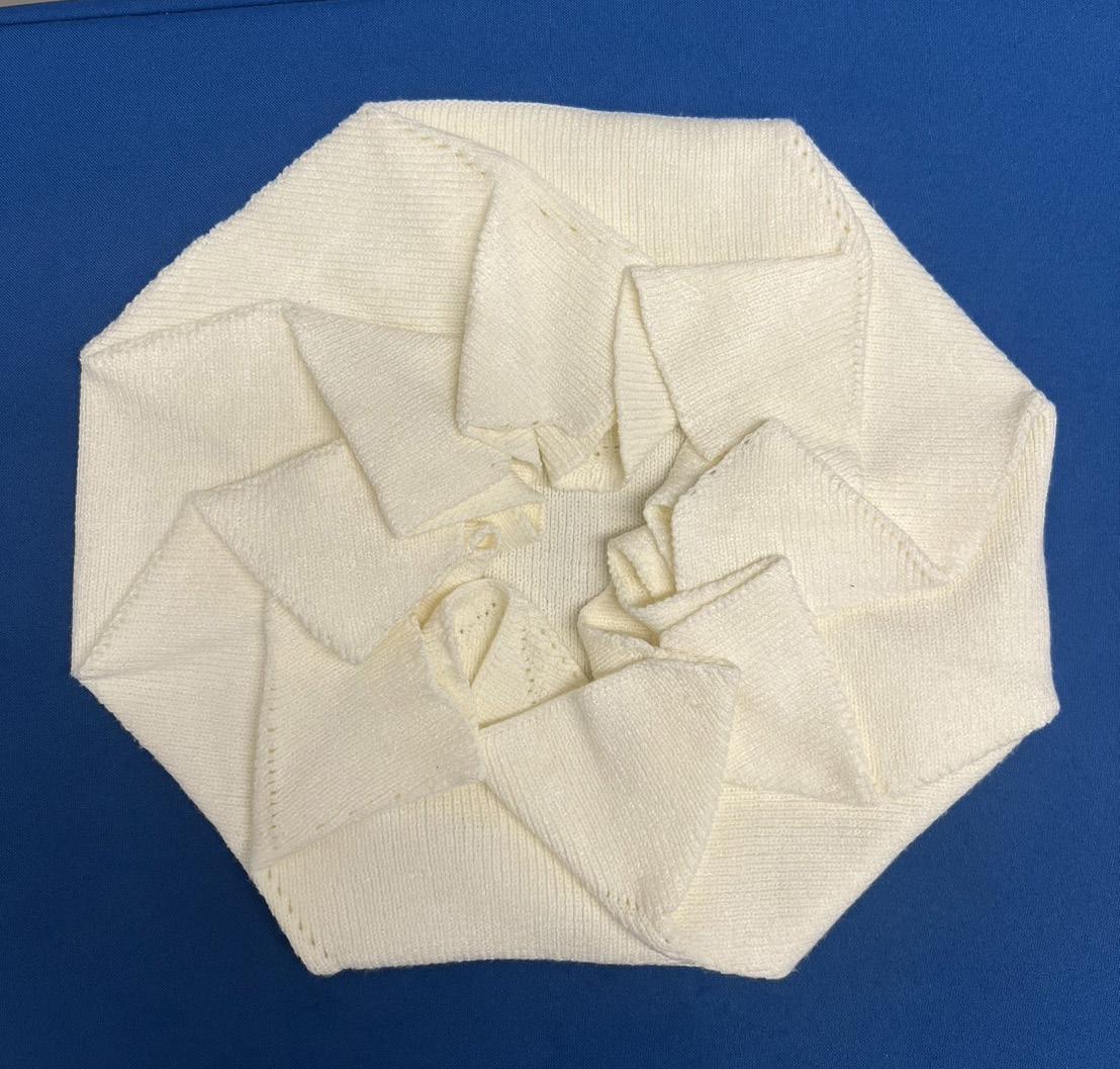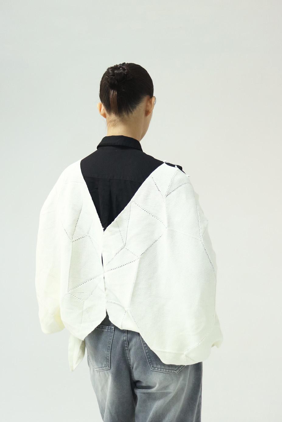 In my previous research, I explored ways to overcome the constraints of folds in both woven and knitted fabrics. This time, my aim is to conceptually break free from fixed patterns of thinking through the principles of origami. By employing dimensional transformations, I seek to illustrate differences in perspective.