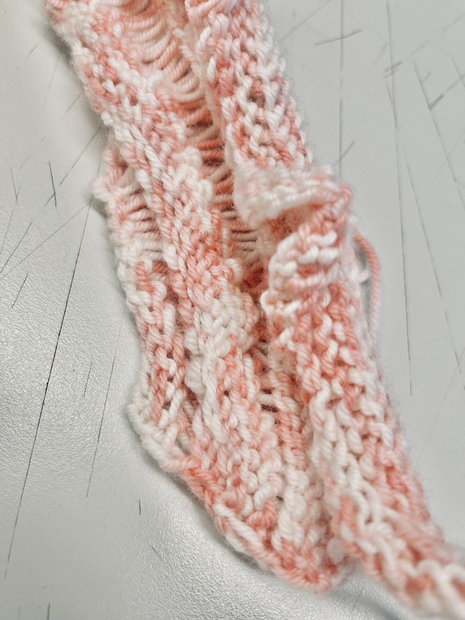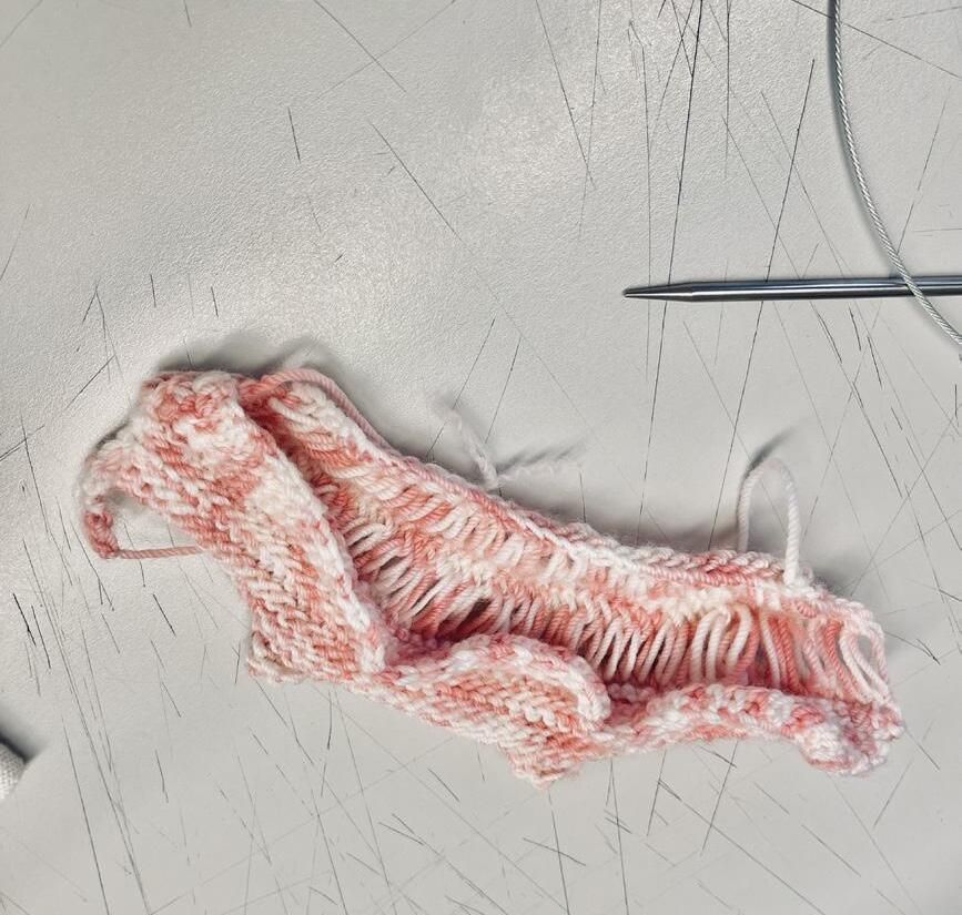 At the outset, I sought to explore the subjectivity of perceiving the world through one's own lens, using the concept of different "blurred effects" as my guiding idea. For this, I chose the technique of drop stitches with knitting needles to experiment with creating this effect.