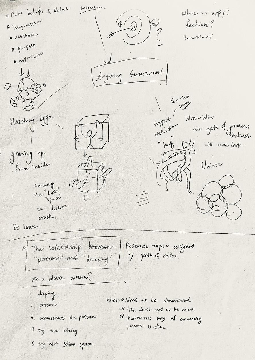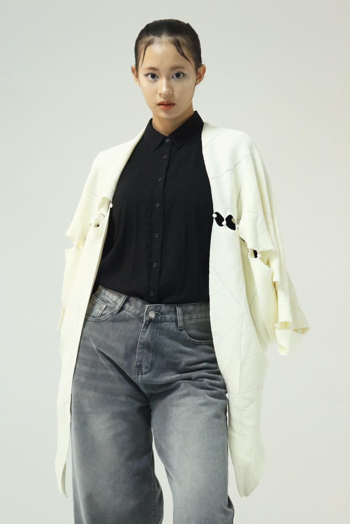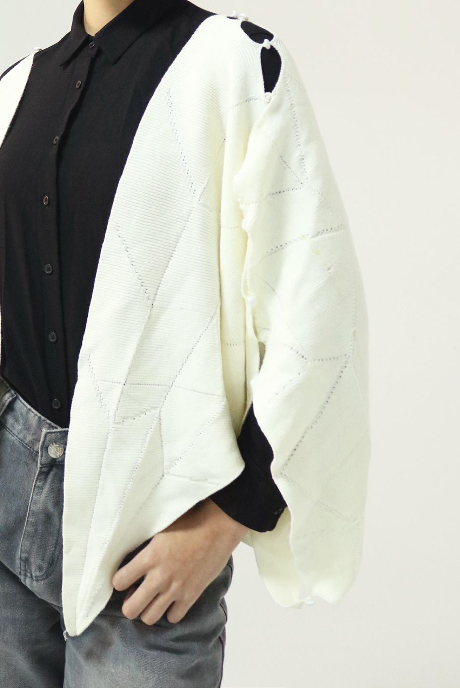 In terms of technique, I sought to translate this concept through origami, combining it with machine knitting to flip between two-dimensional and threedimensional spaces. This spatial transformation mirrors the shifts between adult and child perspectives. Through these connections and reconstructions, I hope to bridge the gap between different viewpoints, creating a shared understanding.