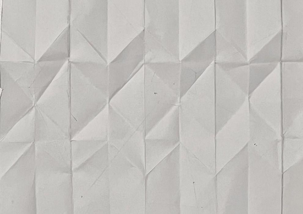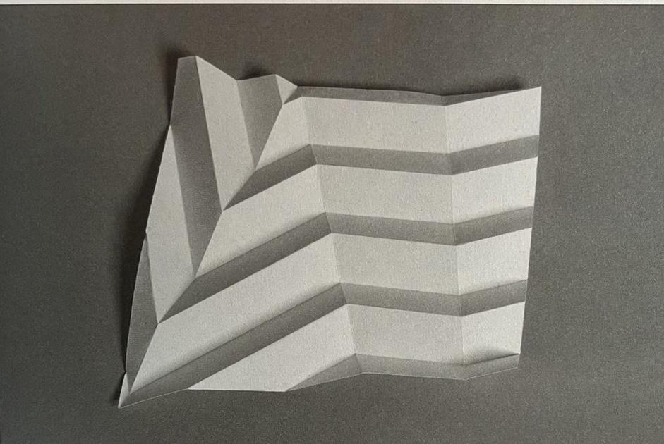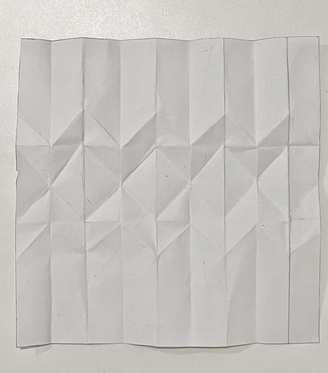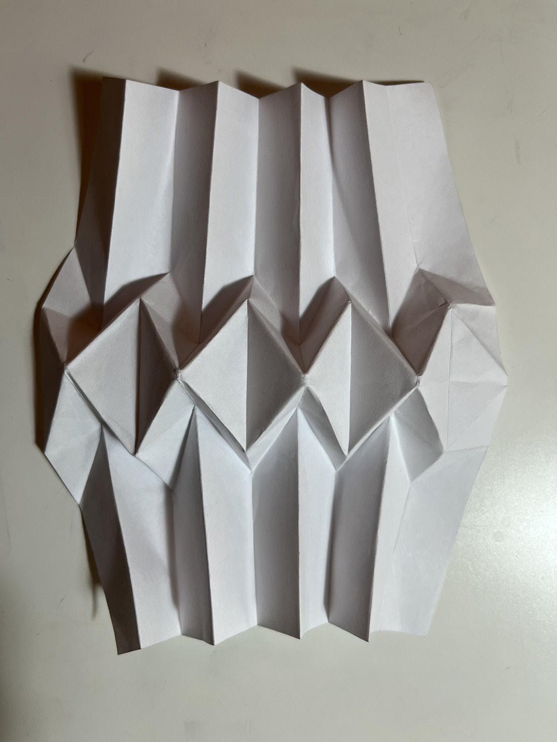 During this study of origami, I experimented with various forms of pleated structures, investigated the interplay between mountain and valley folds, and conducted preliminary explorations into how patterns of repetition influence the overall folding effects.