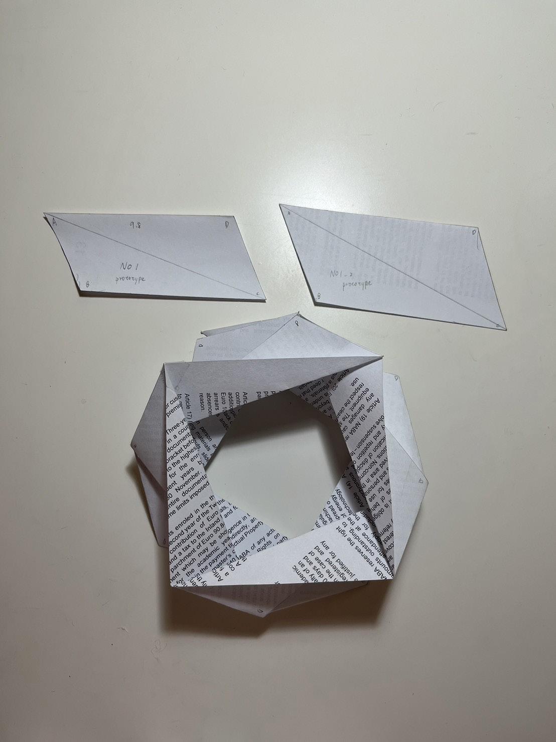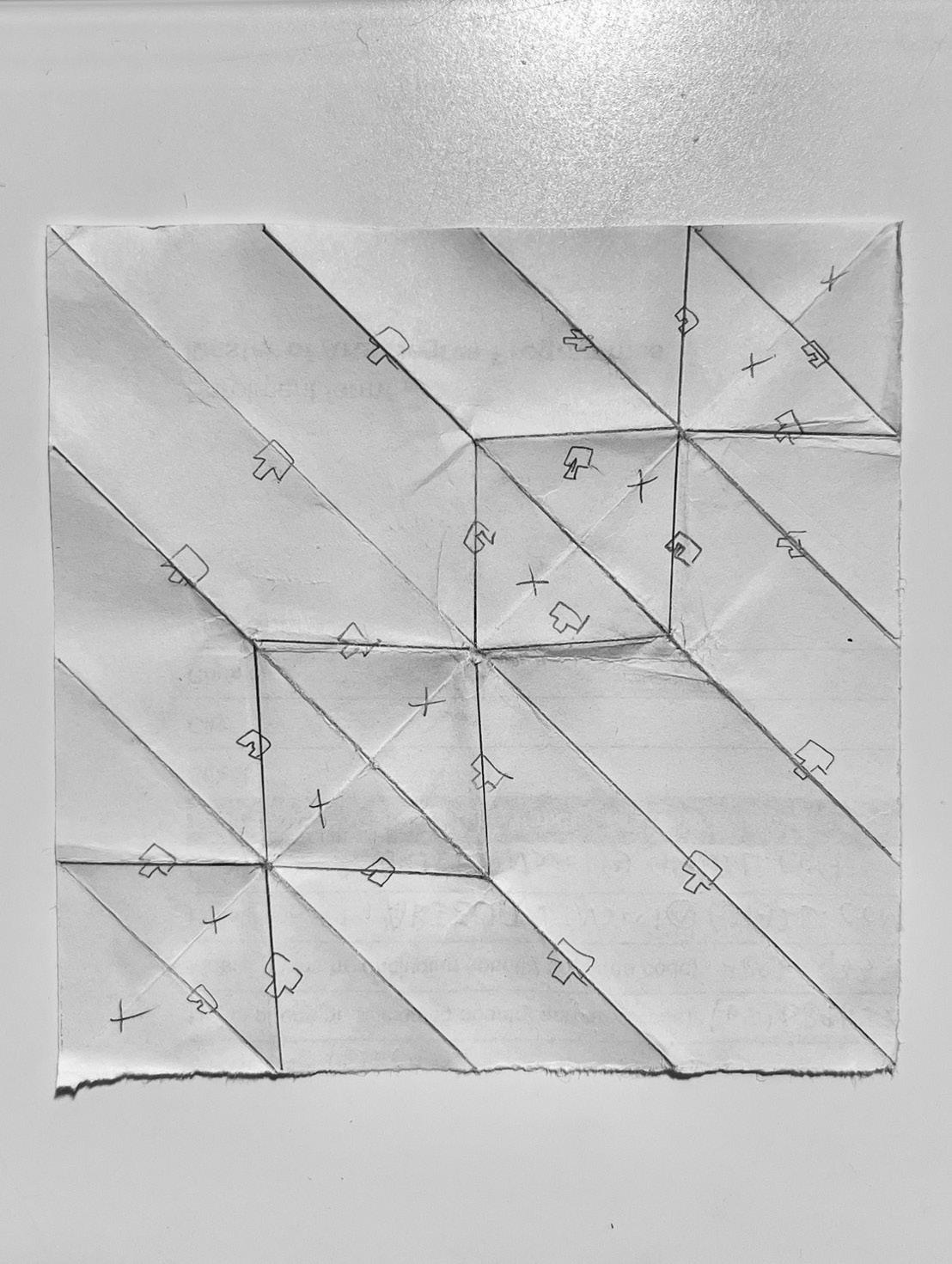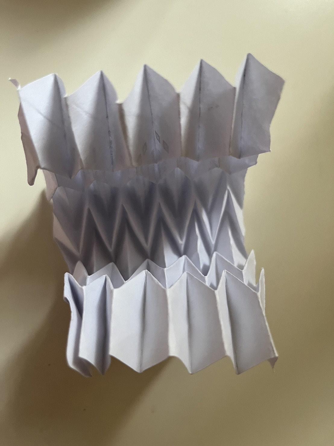 During this study of origami, I experimented with various forms of pleated structures, investigated the interplay between mountain and valley folds, and conducted preliminary explorations into how patterns of repetition influence the overall folding effects.