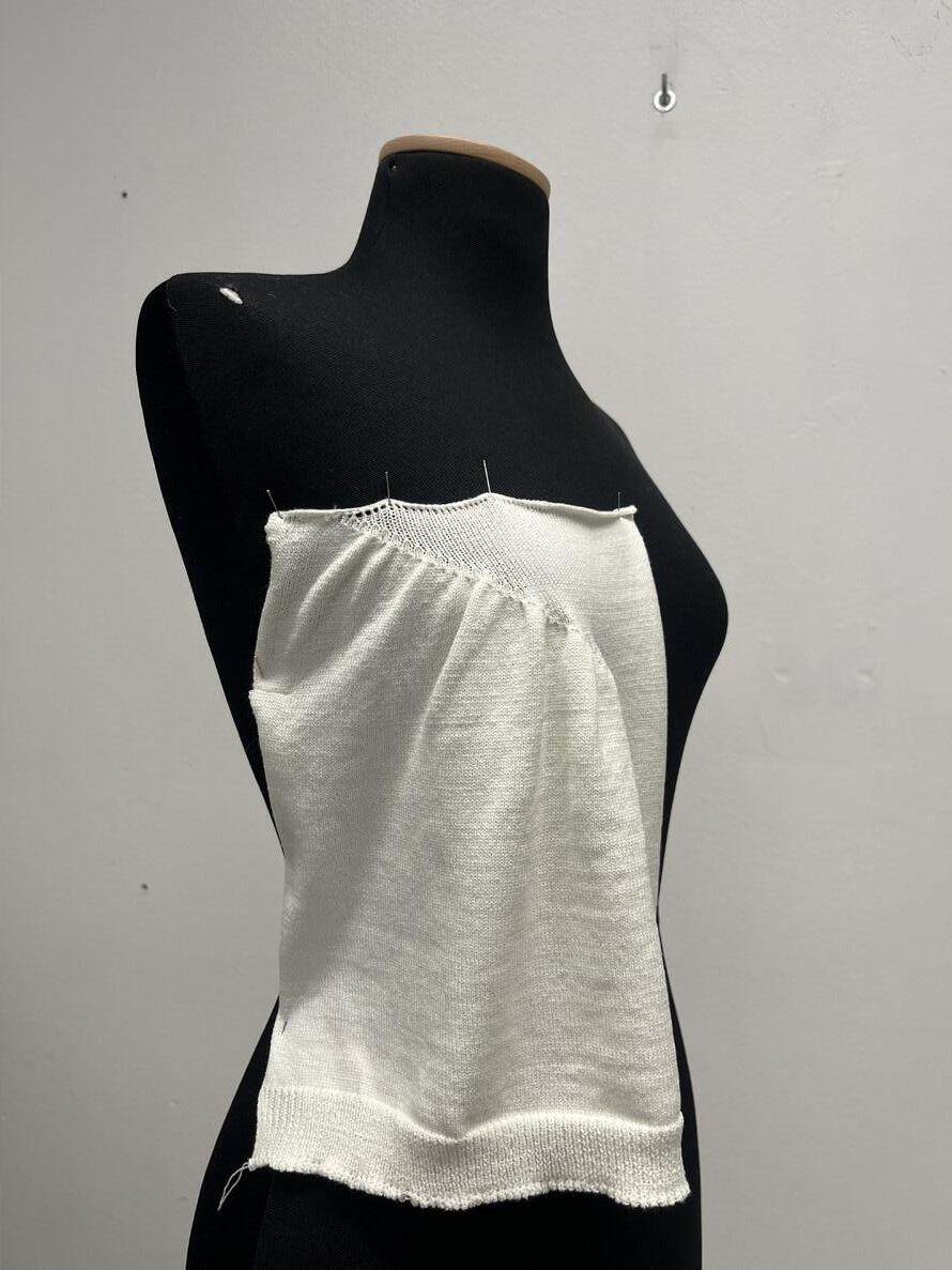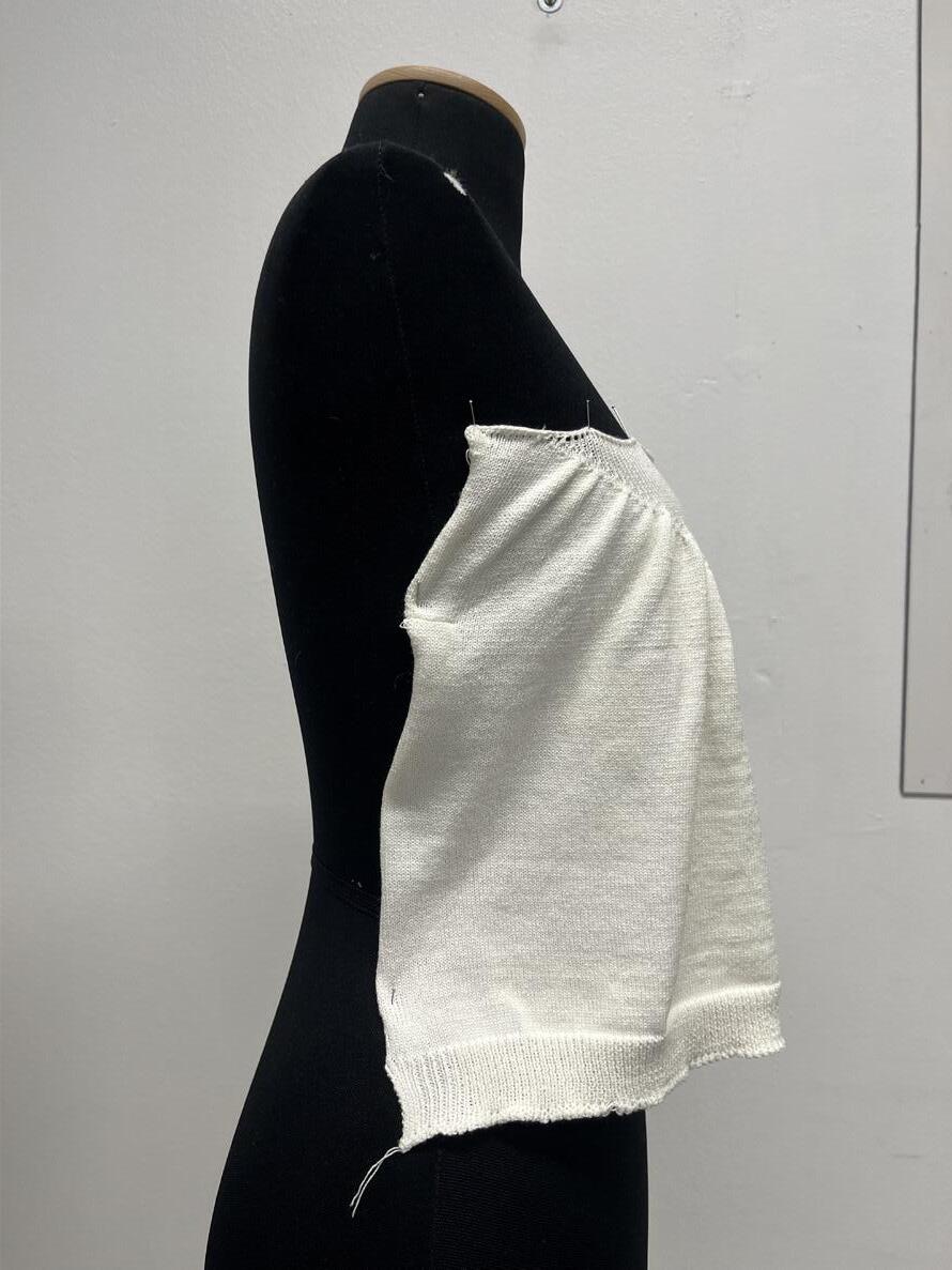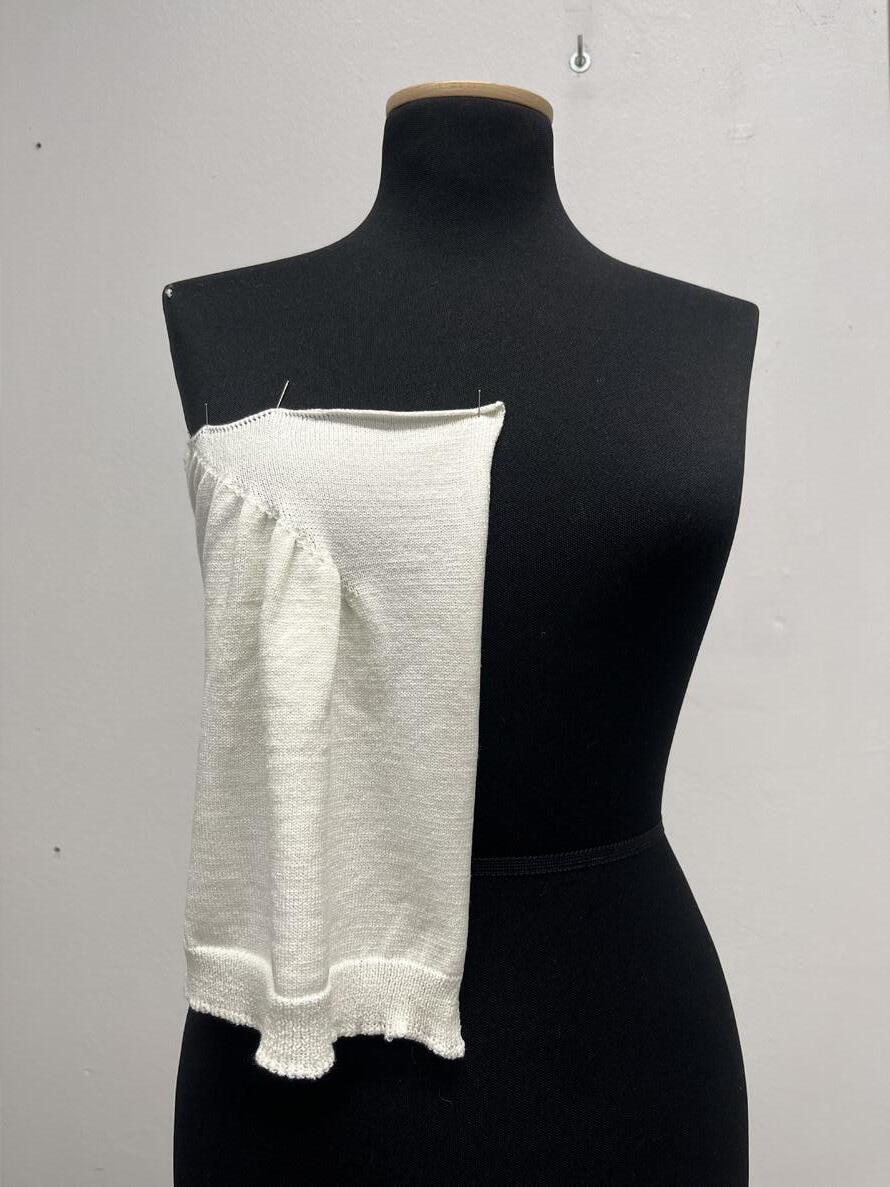 Initially, my plan involved crafting multiple small swatches of varying shapes and stitches, either by crochet or knitting(or both), each representing a distinct perspective layered with individual projection. These swatches were then to be placed on a mannequin and reassembled as a garment to depict the world as a composite of multiple viewpoints. This approach aimed to convey the notion that there is no singularly correct perspective in life—rather, the world is a mosaic of diverse perspectives woven together.