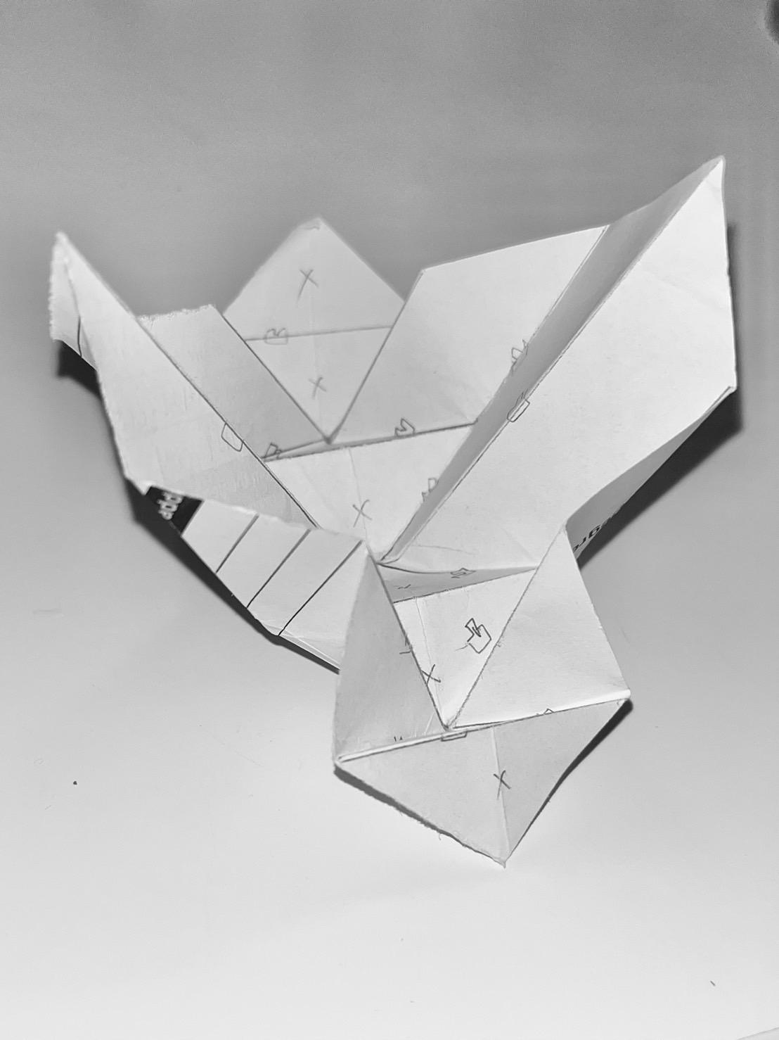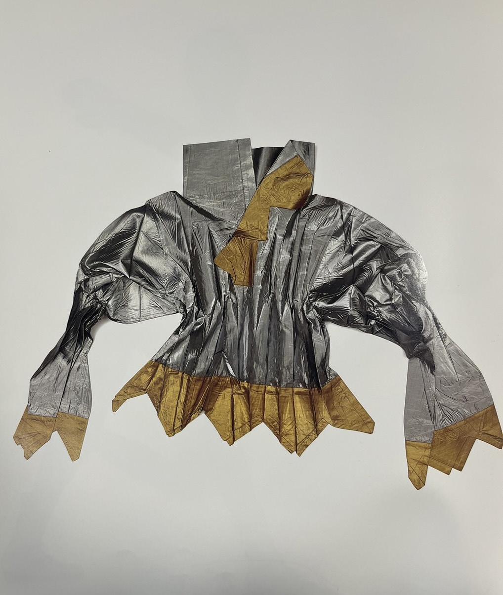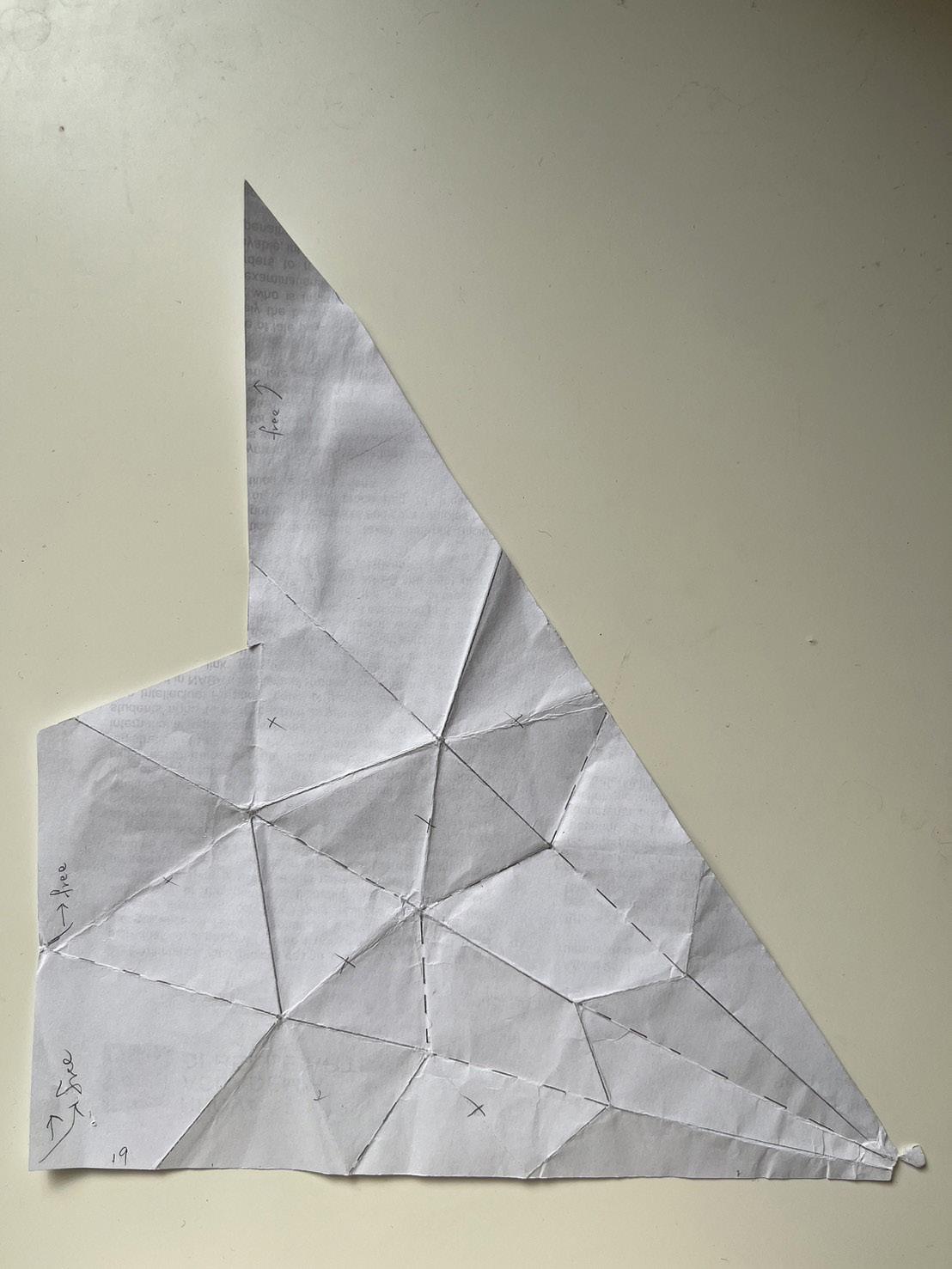 Origami is an art form rooted in geometry, utilizing mountain folds and valley folds to transform flat sheets of paper into three-dimensional structures or to achieve specific pattern through folding. As a fashion designer, my initial encounter with the concept of "folds" stemmed from their practical necessity in creating dimensionality in fabric.