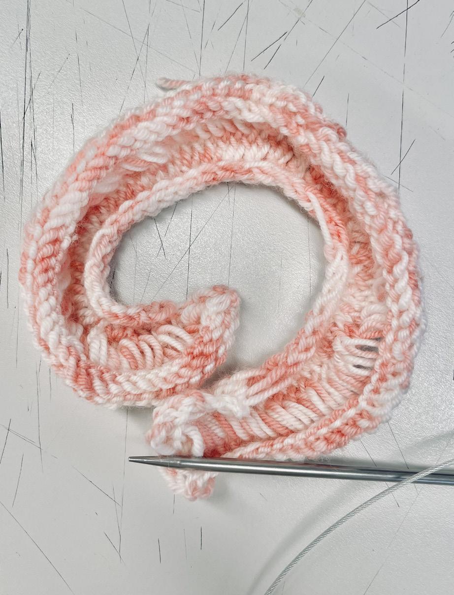 knitting dropstitch and add stitches on the outside to create curved effect******