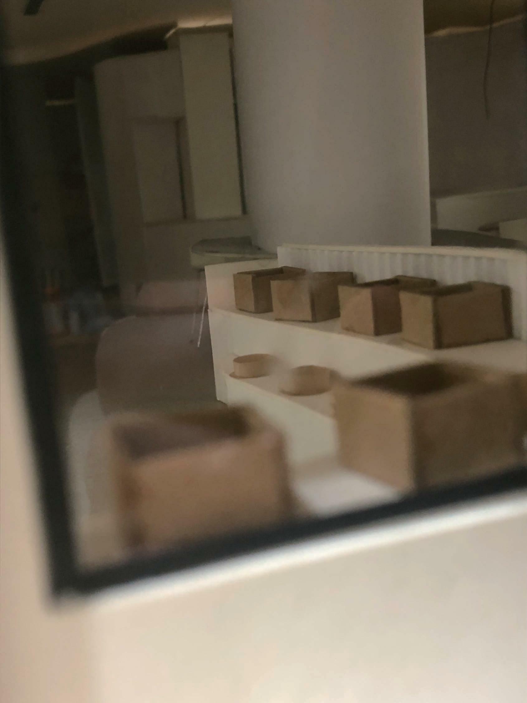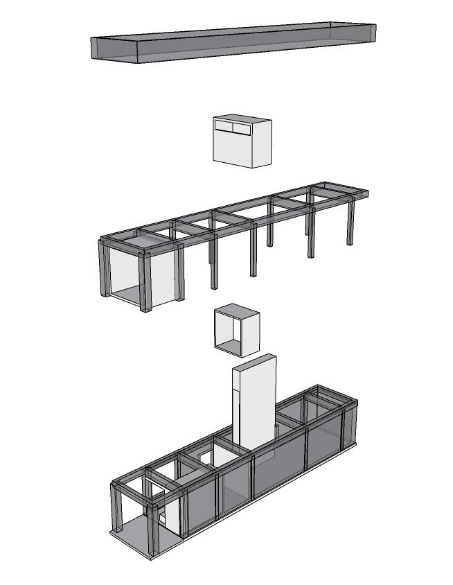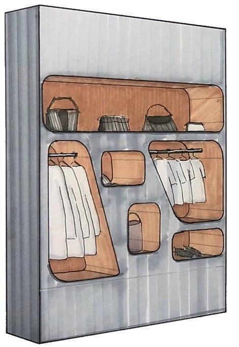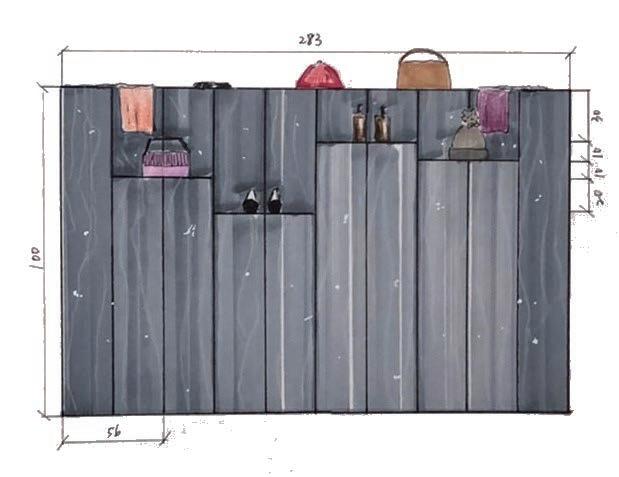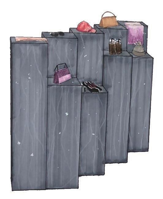 矮櫃設計不同的服飾配件。趣味性,並利用櫃體不同的高度差展示排的櫃體使用不同的高度,增加櫃體的使用多個長方形塊體有規律地排列,前