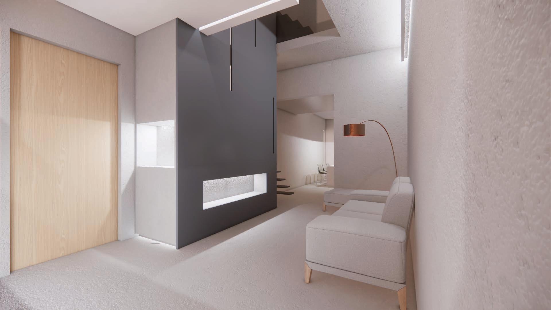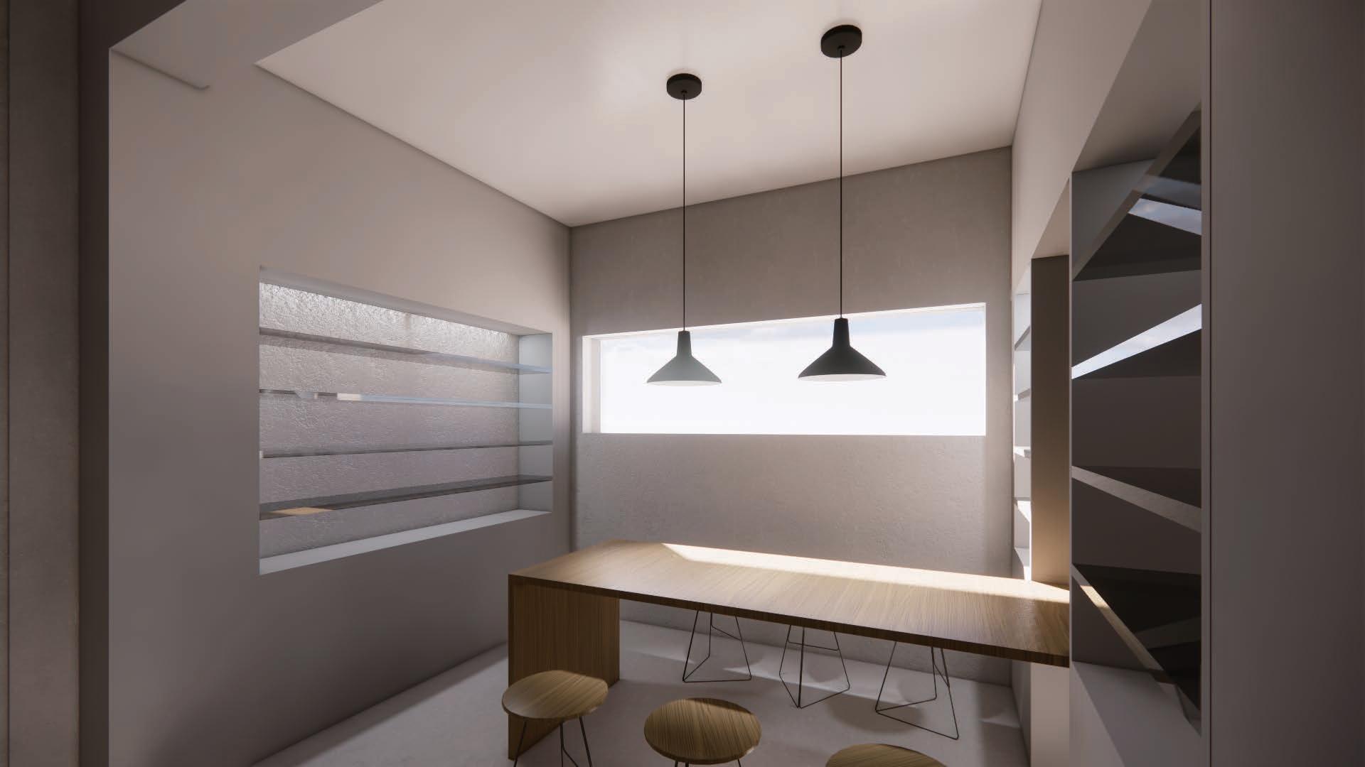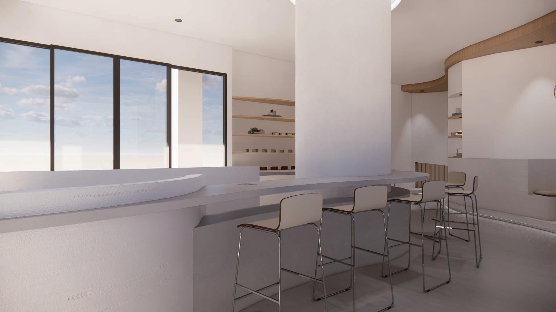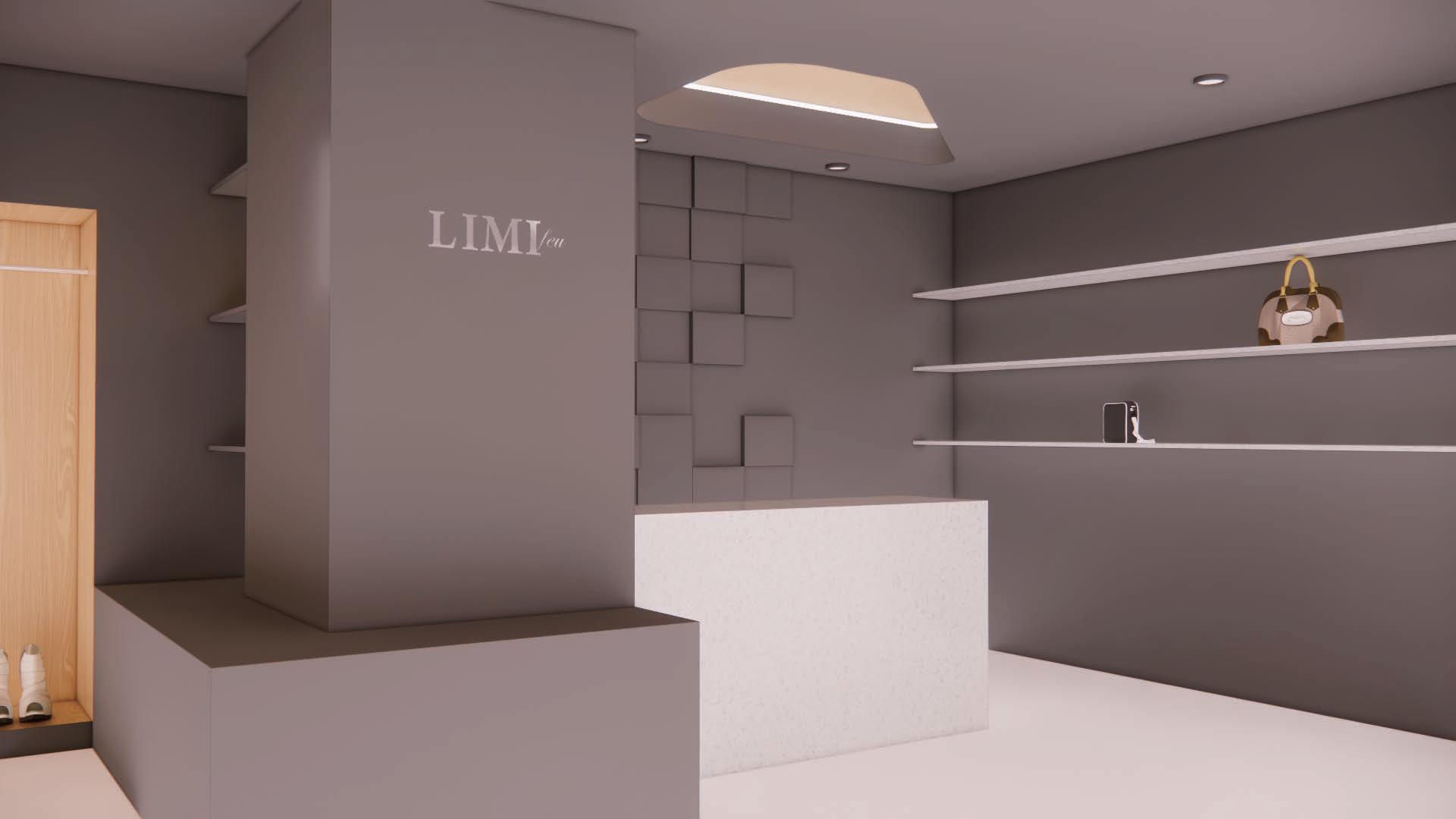 過切割、推拉,表達品牌服飾的剪裁及層次感。配合品牌形象,以灰階色彩作為量體主色調,經