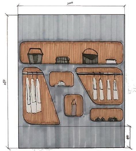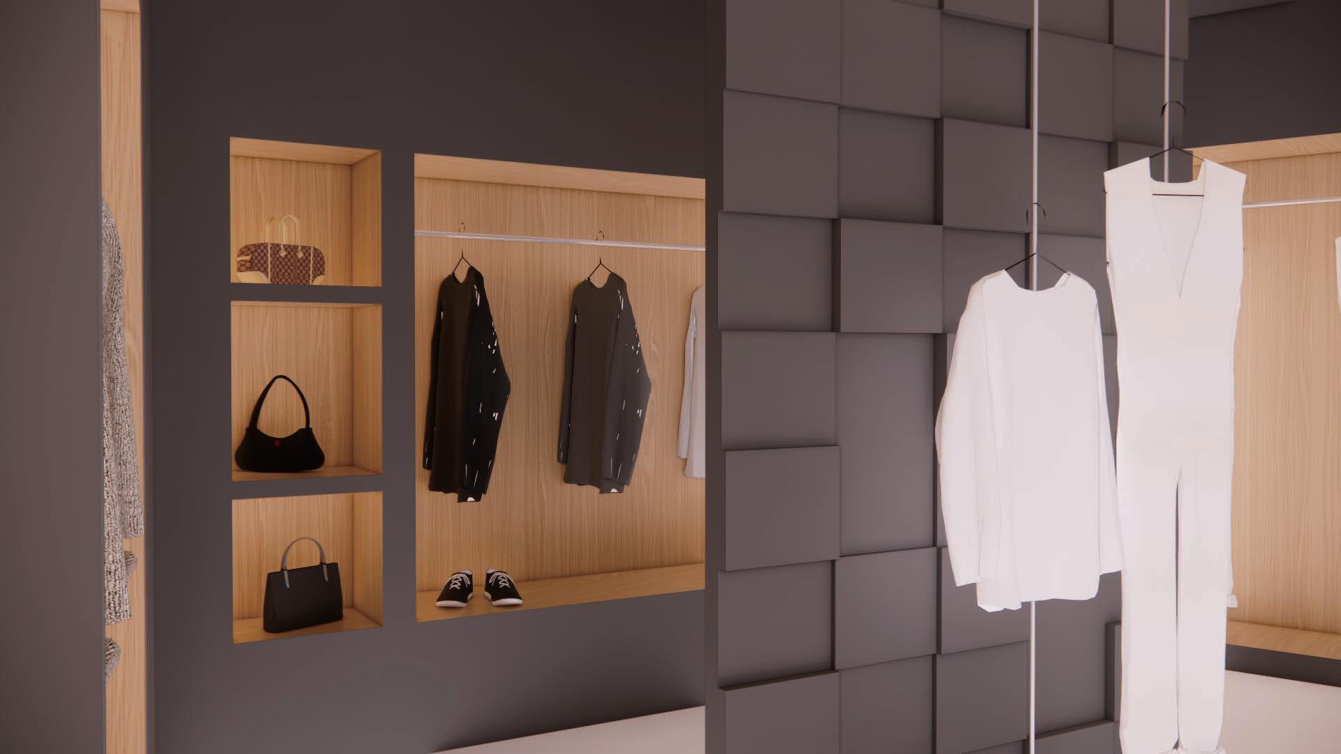 矮櫃設計不同的服飾配件。趣味性,並利用櫃體不同的高度差展示排的櫃體使用不同的高度,增加櫃體的使用多個長方形塊體有規律地排列,前
