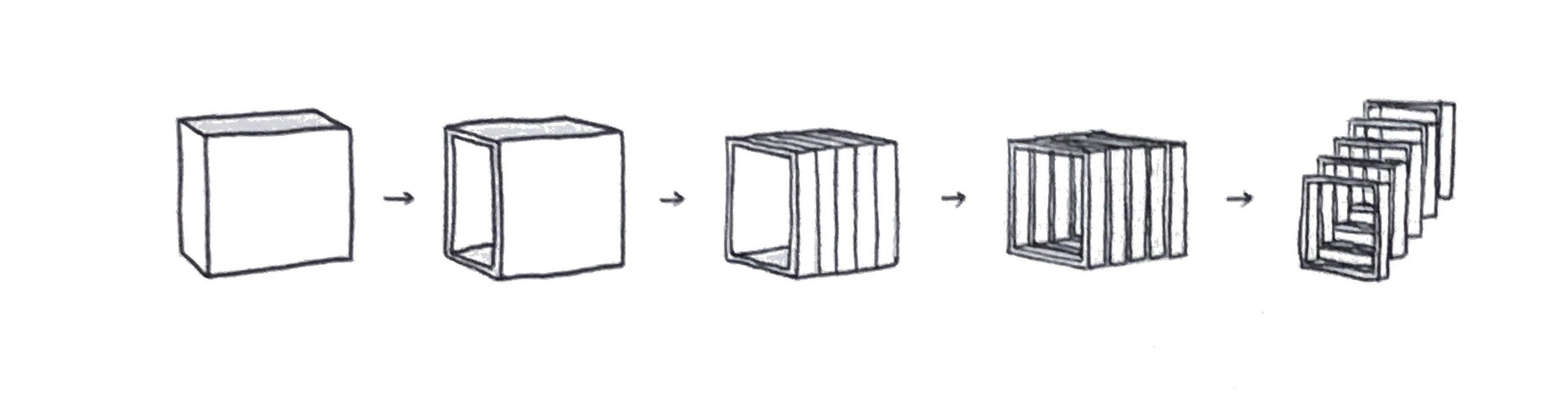 漂流木未經處理的狀態 隱約可見的漂流木的內部構造 木頭外觀的裡外關係 空間中的裡外關係 空間中的空間