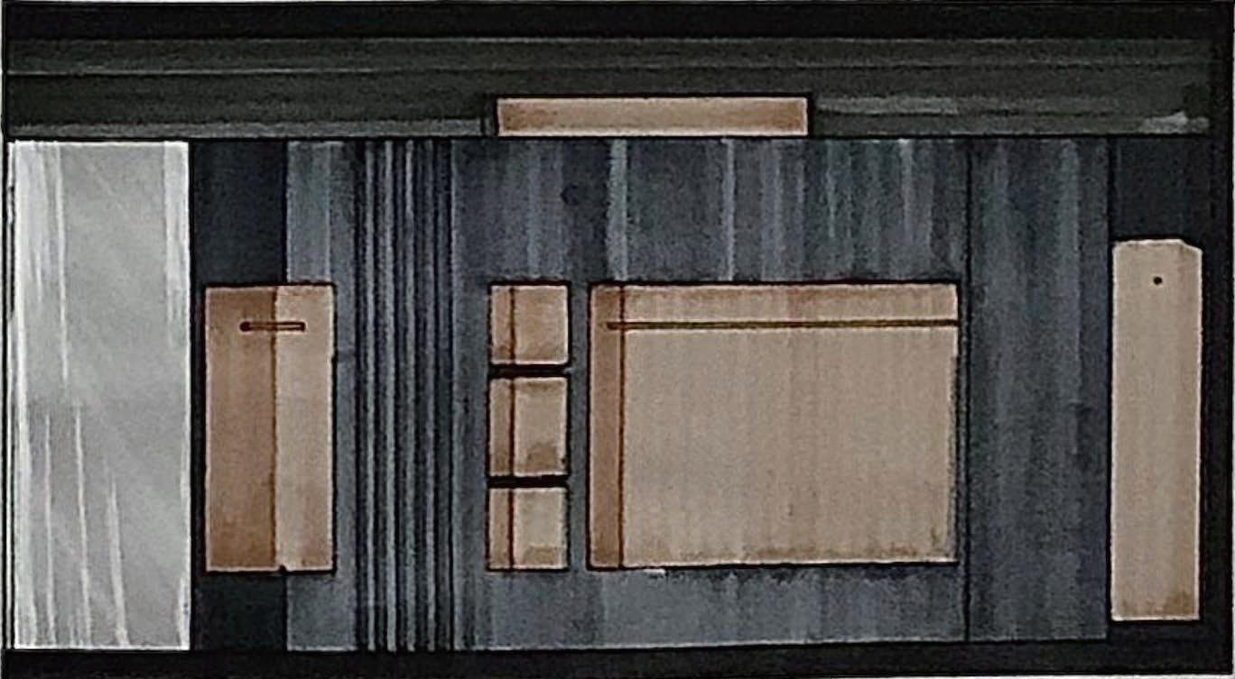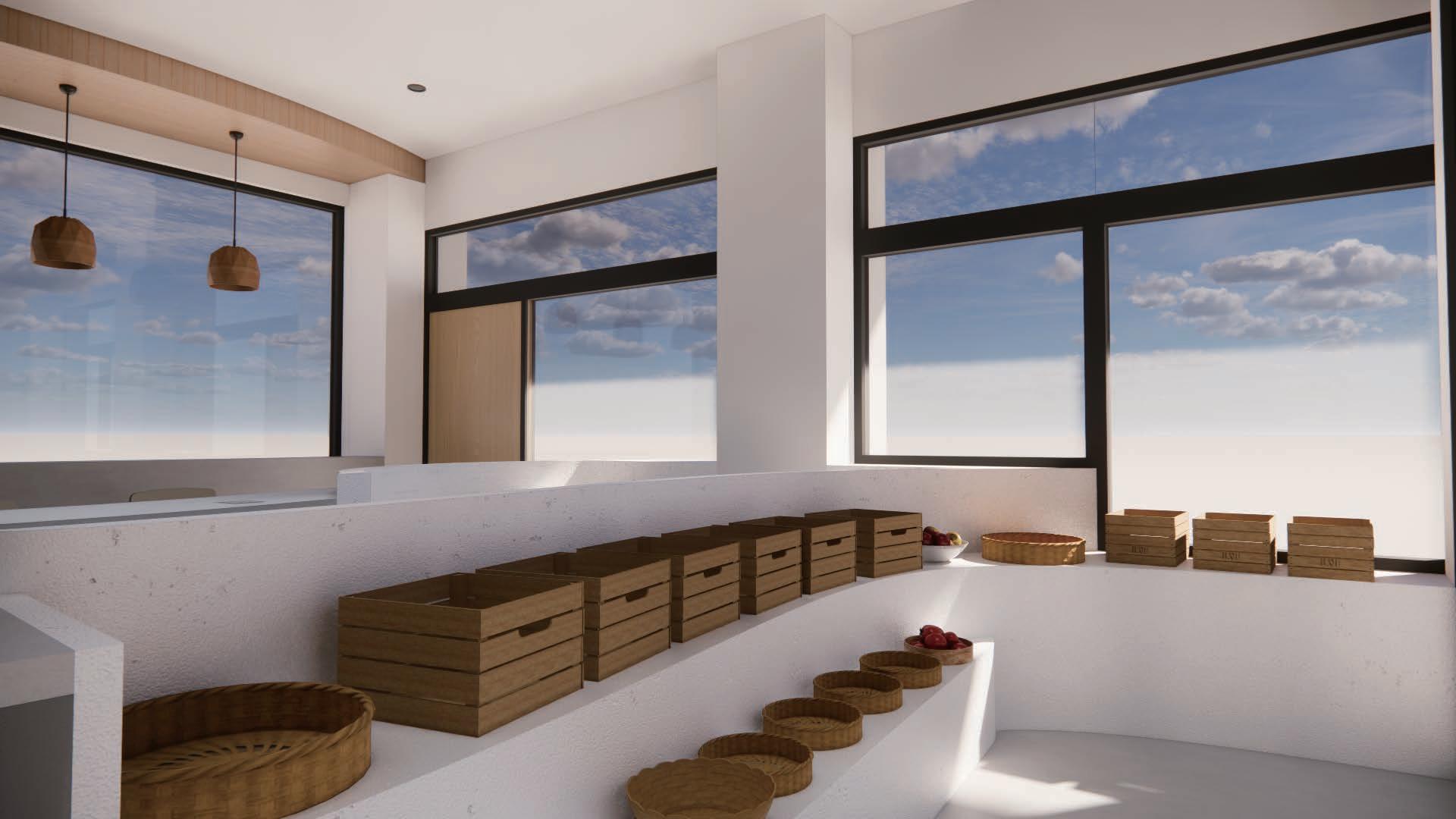 商業模式.茶飲+茶點.茶具/茶葉 / 茶點販售 材質/色彩計畫間做結合,讓附近的住戶可以購買,並帶回家烹飪。這個空間傳達給顧客。此外,因基地所處位置為住宅區,故選擇販售坪林當地的小農農產品與餐飲空結合所選品牌特色,希望能創造一個能休閒品茶的空間,同時希望能將坪林在地的自然人文特色透過.小農農產品黑色鐵件水泥石英石玻璃