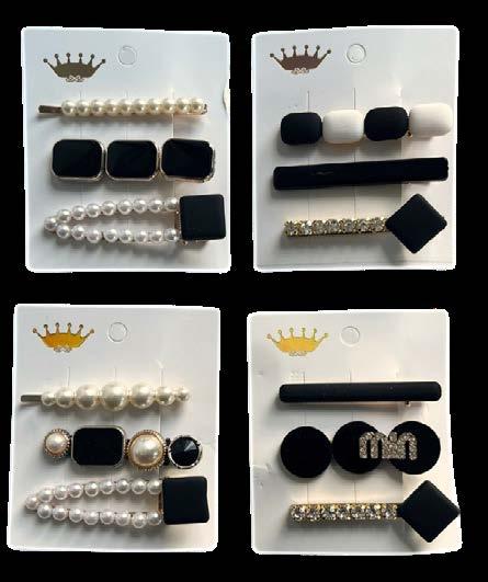 Kit 3 grampos preto/pérola/strass