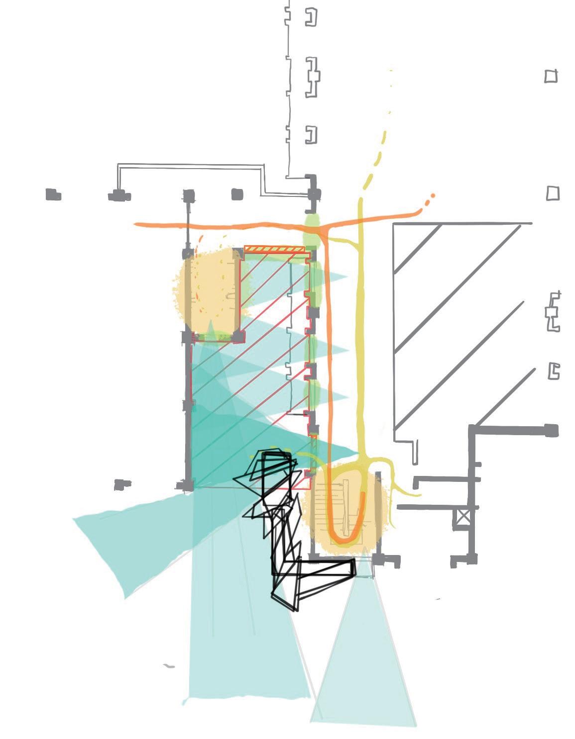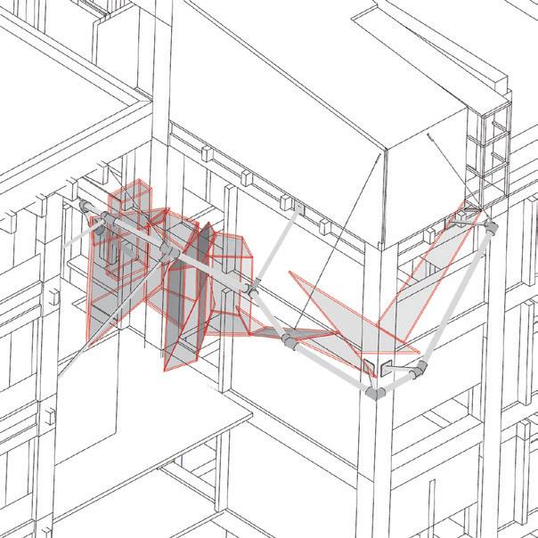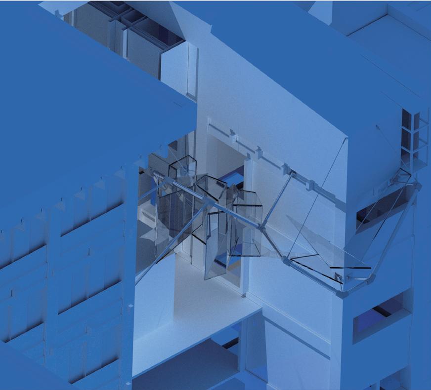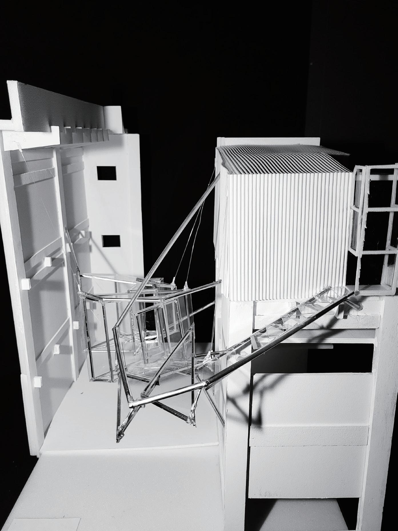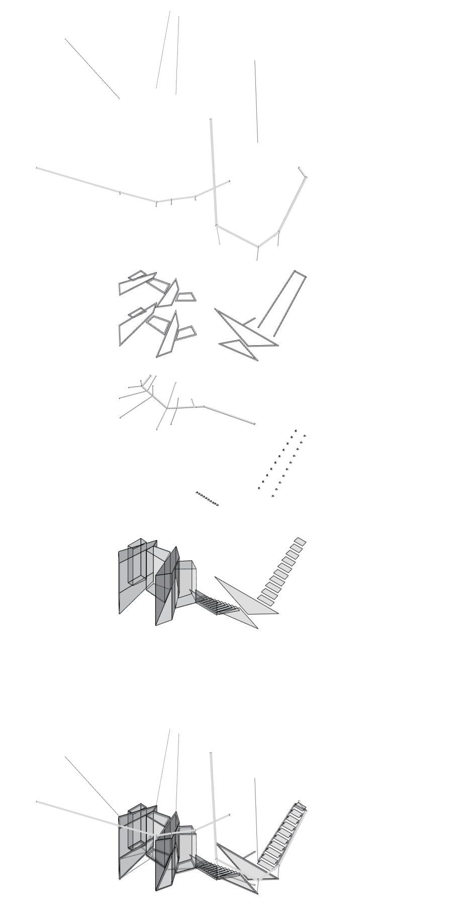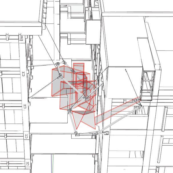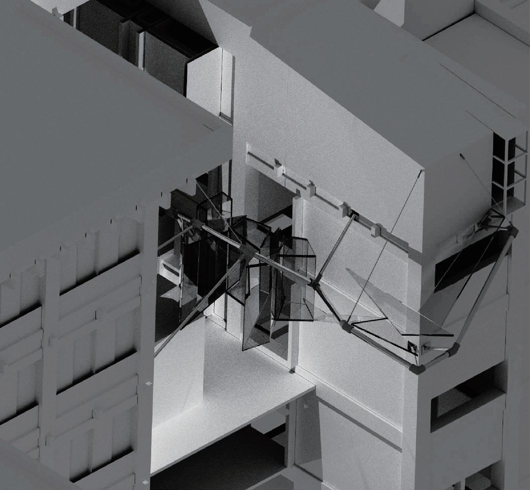Introduction 於淡江建築系館之中設計寄生空間單元 ,透過漫遊之靈魂,劃開空間並短暫的 寄生於此,以曖昧狀態存在,使空間發 生質變,最終創造出碎化之空間型態。