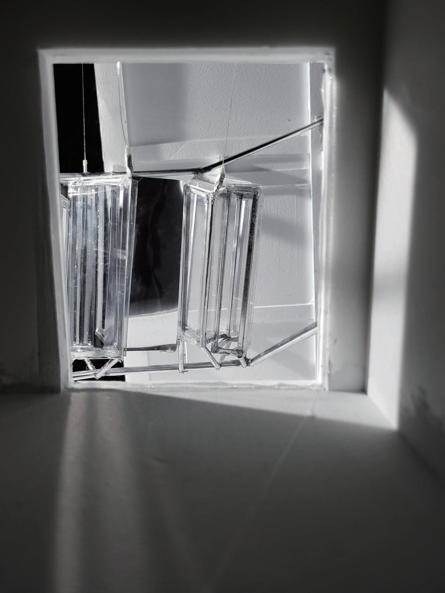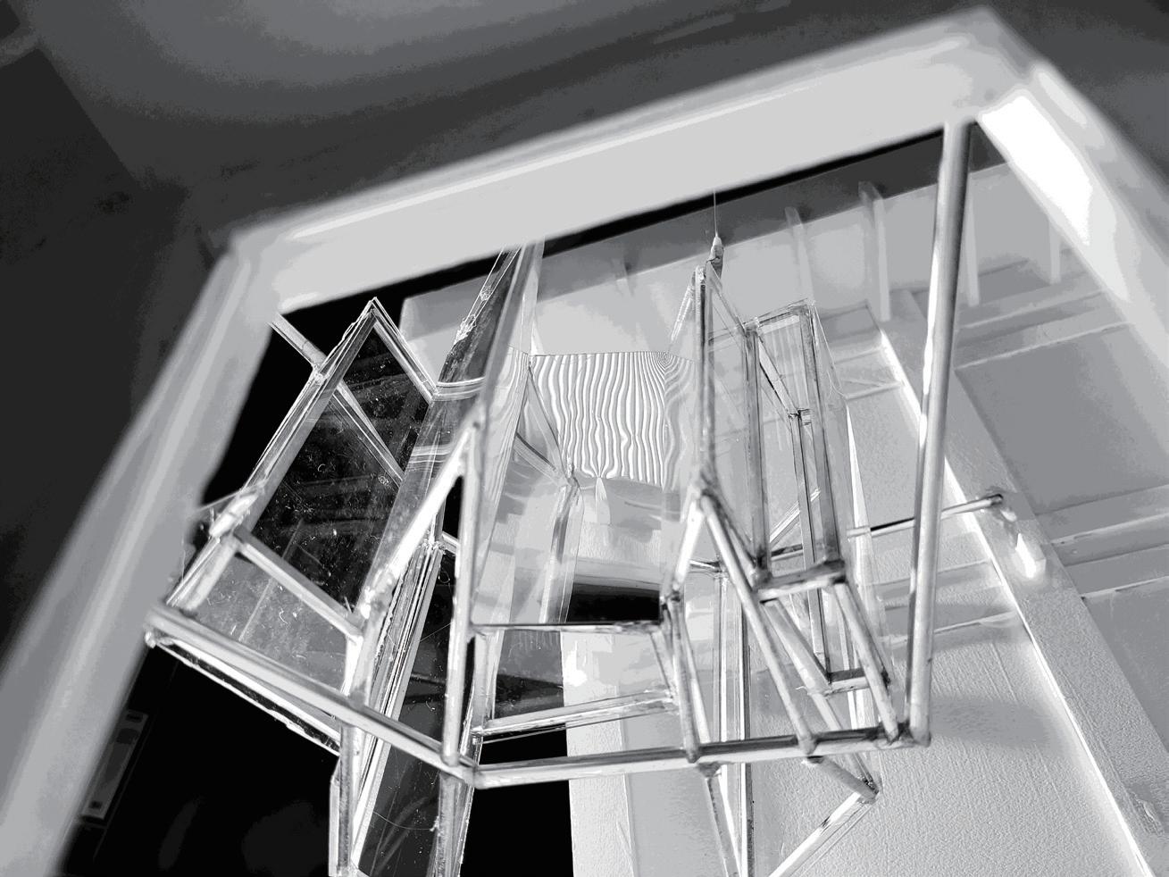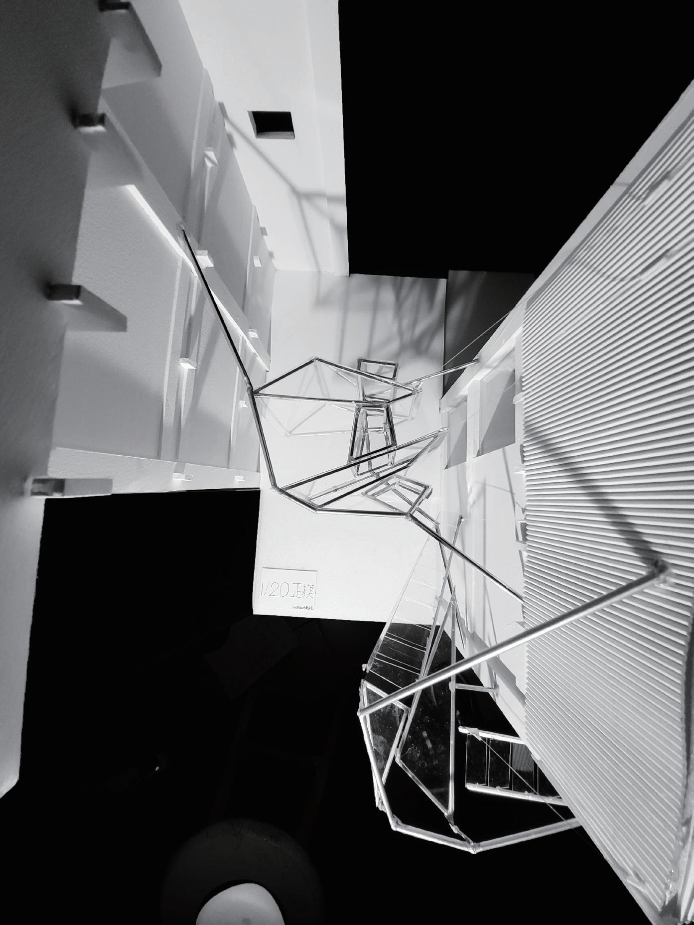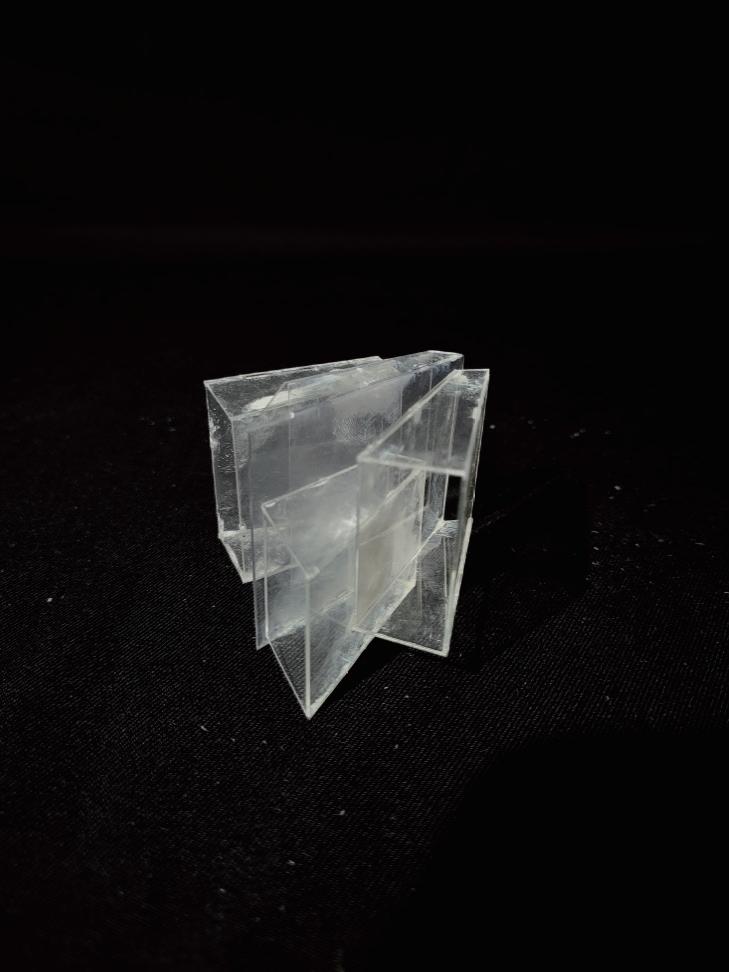 1 為了抽離既有認知之空間經驗,以純粹的透明材料以角度轉折與疊加層次之手法設計初步概念。
