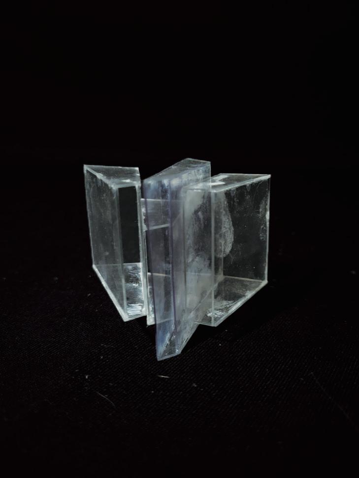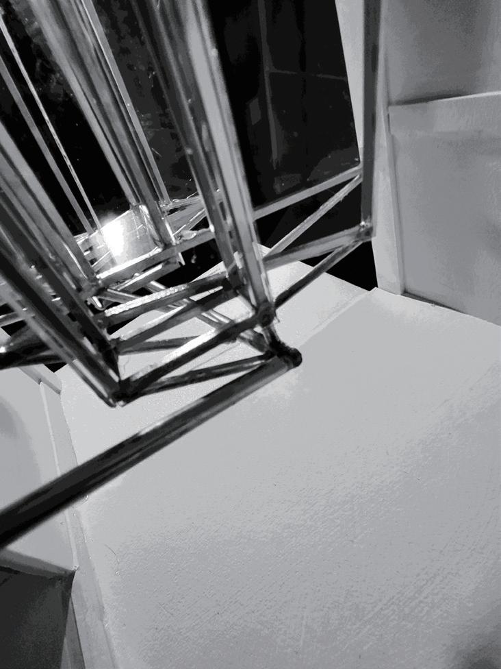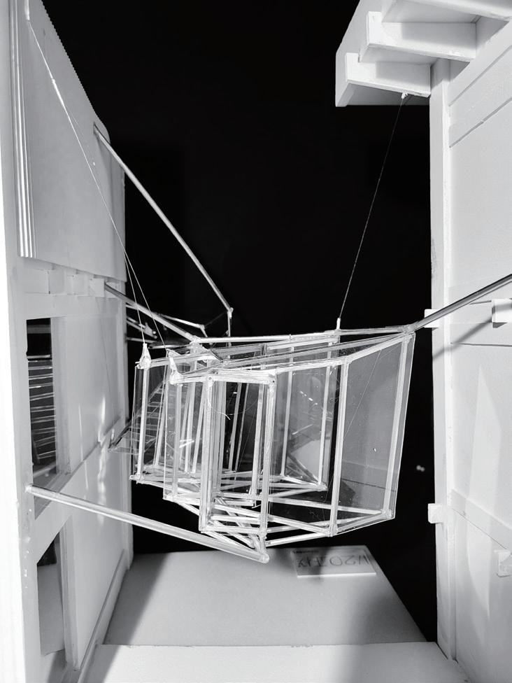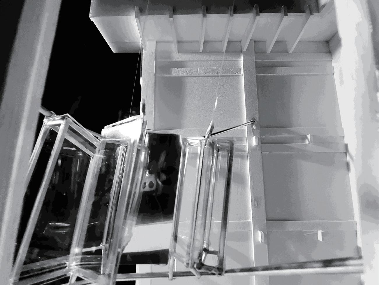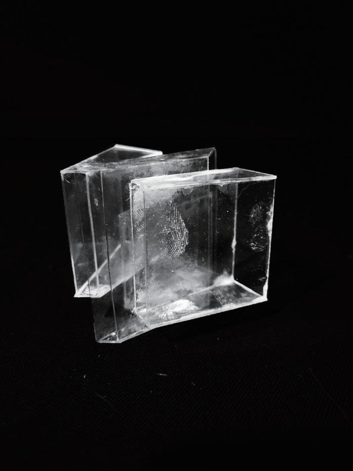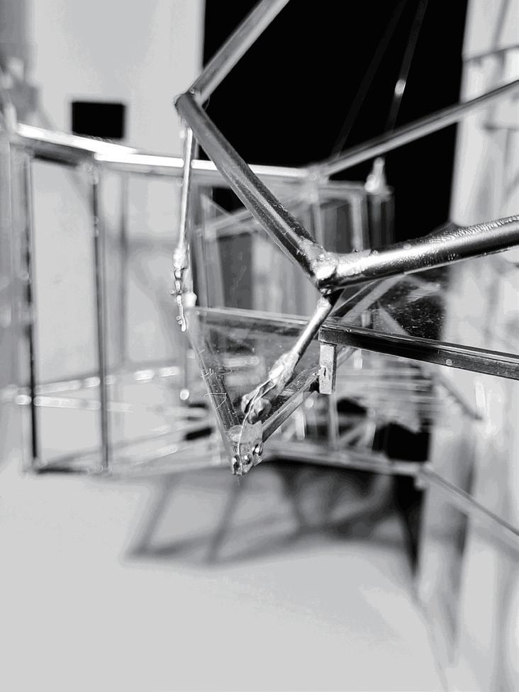 1 為了抽離既有認知之空間經驗,以純粹的透明材料以角度轉折與疊加層次之手法設計初步概念。