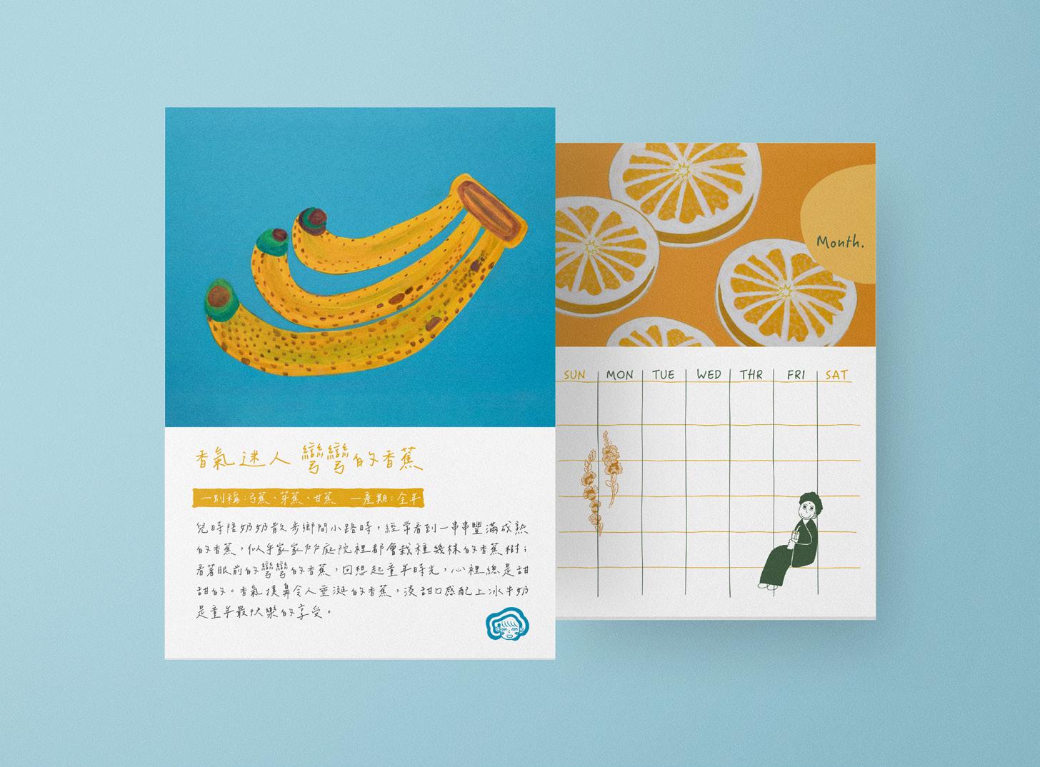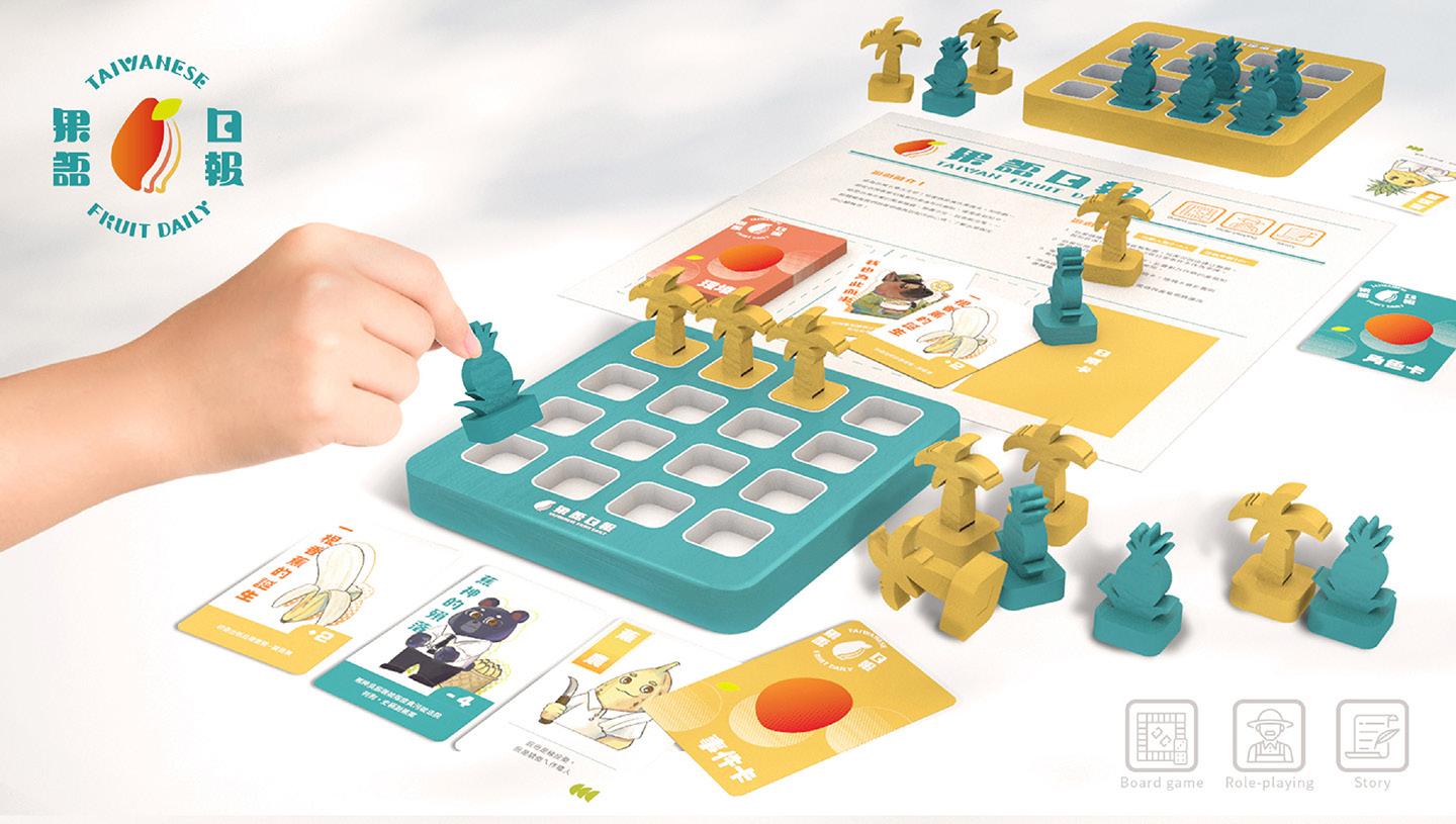 2021/文創商品設計 「果語日報」桌遊讓玩家扮演蕉農和鳳梨農的角色,透過牌卡講述水 果歷史,牌卡中會出現台灣發生過的水果相關事件,使玩家體驗台 灣水果從黃金年代逐漸走向沒落的興衰,也和農夫一起體會跟著物 價跌宕起伏的心路歷程。