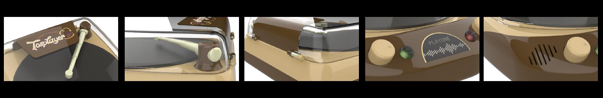 「TOSPLAYER」打破傳統黑膠唱片機和烤土司機的形式,將二者功能結合並創 新出更新穎的使用方式,不僅可以用手機連線讓吐司烤出自定的8bit圖案, 還能讓使用者在烤吐司的同時,愜意的享受一首歌的早晨時光,最後再從唱片 針中擠出果醬。「TOSPLAYER」讓使用者從日復一日的無聊任務(烤吐司)中, 有了全新的感受。