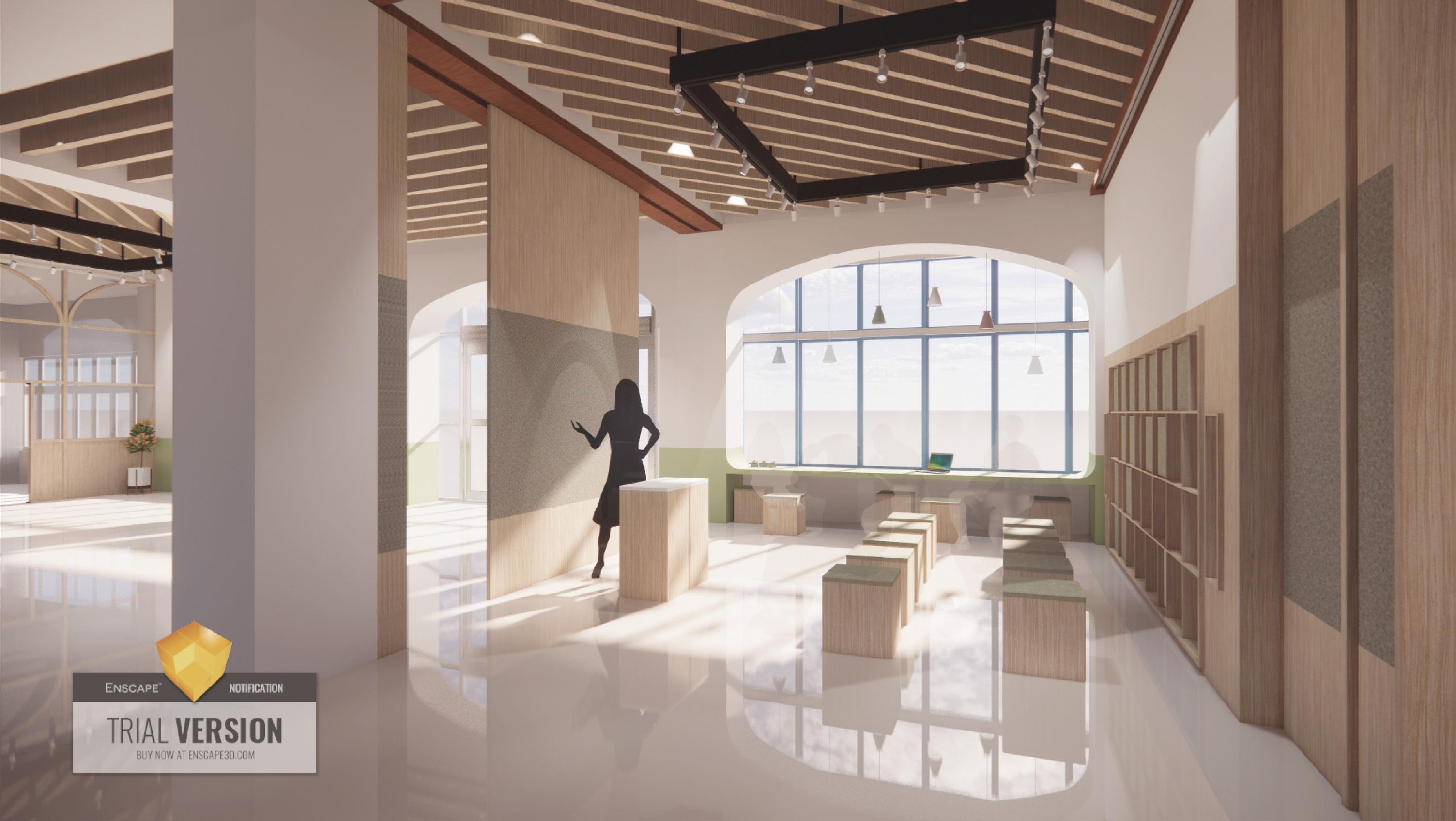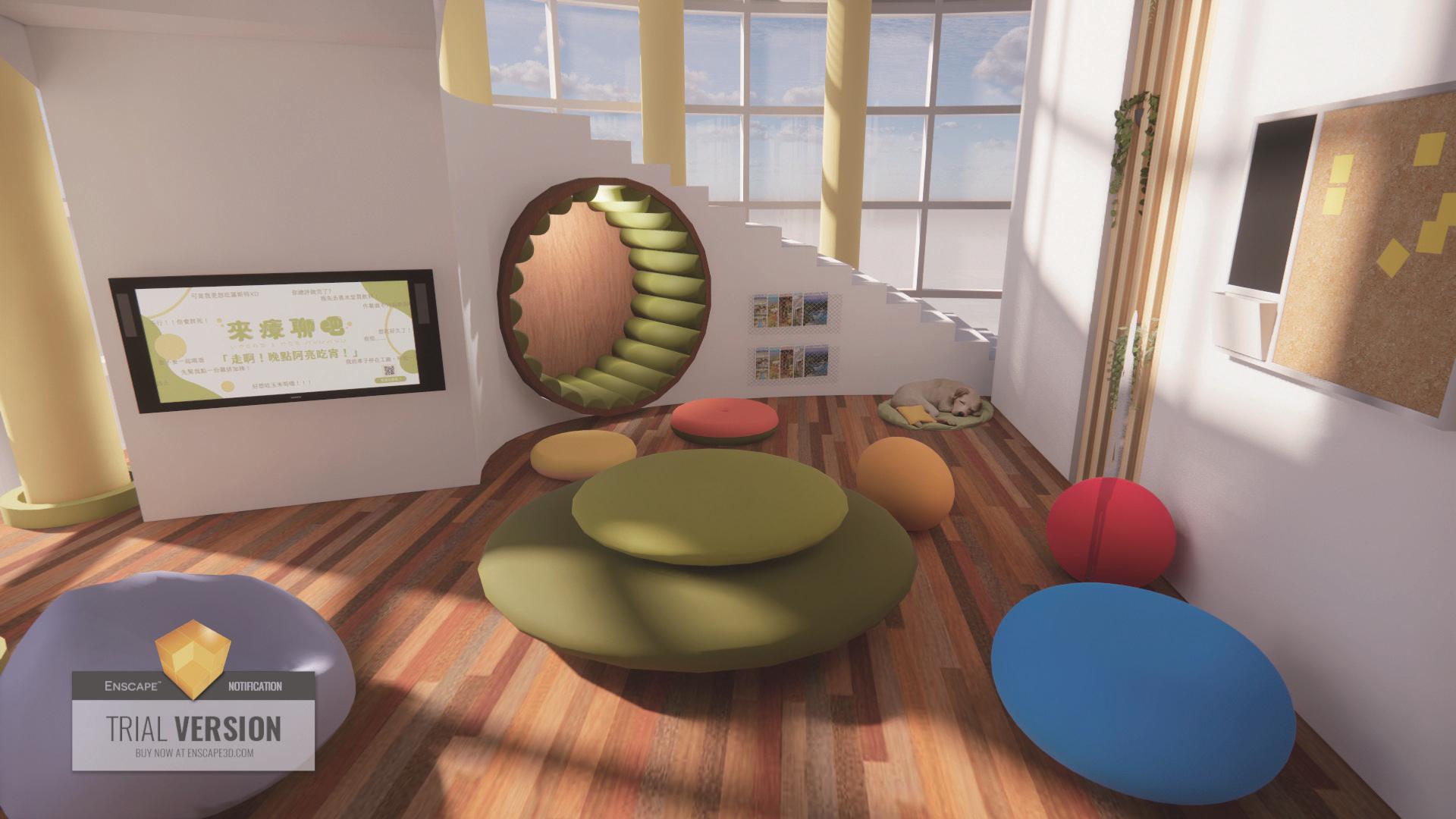 為題,試著改善設計三館原空間線條僵硬、色調冰冷、具壓迫感……等問題,團隊以療癒 綠植與溫潤木料打造空間基底,用互動行為和空間質感營造紓壓氛圍,創造一個更符合設 計系學生需求的機能空間。