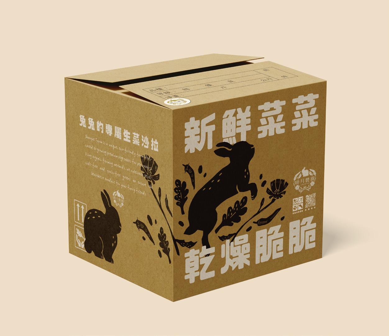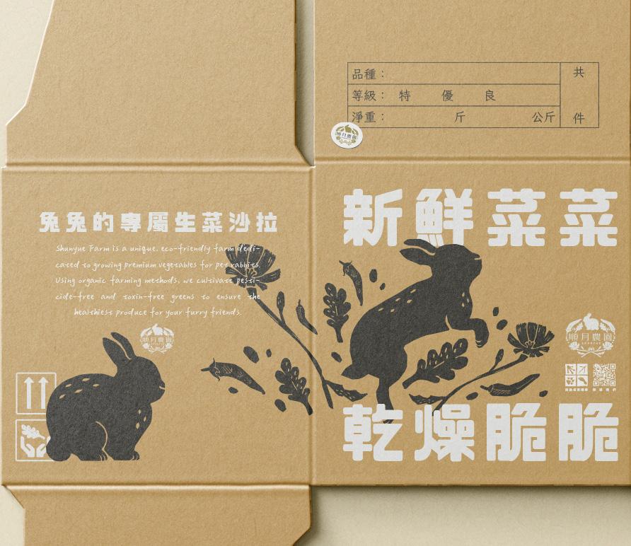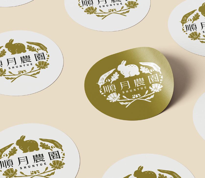 植的蔬菜和自然生長的小金英作為視覺元素,和在農園裡自由生活的兔子組成 LOGO,邊緣用硬挺的線條呈現版畫的質感,加之色彩規劃使用稱為菜種油的綠