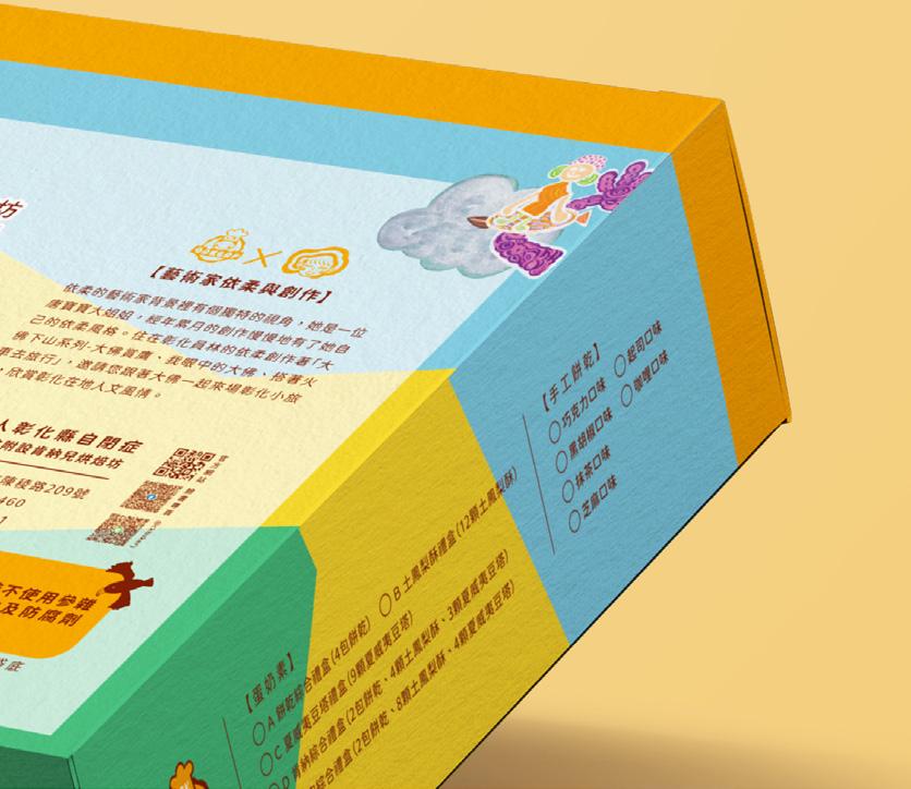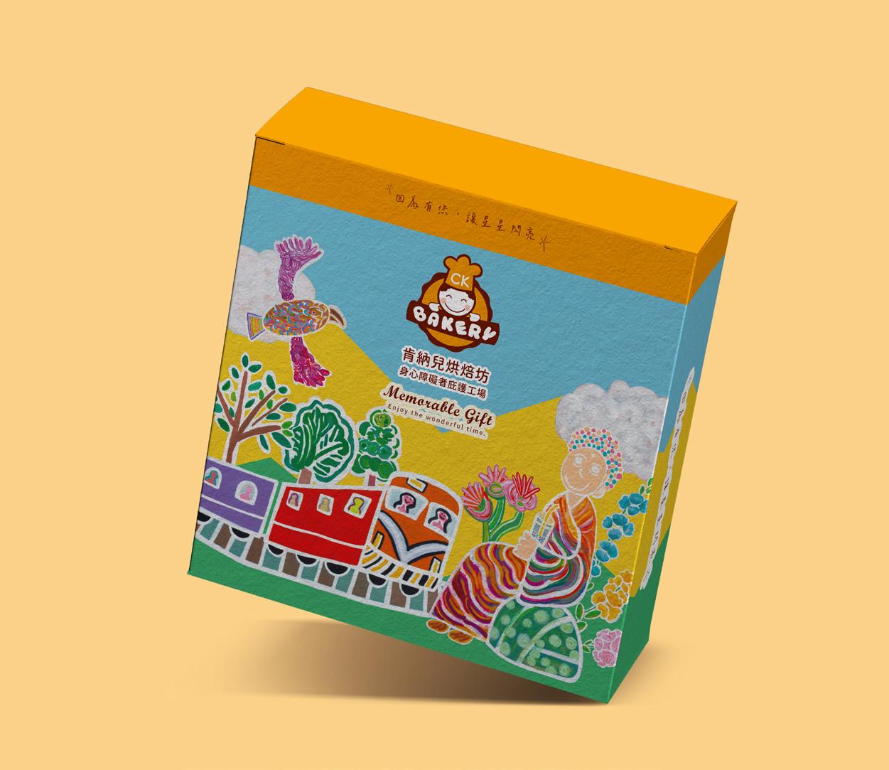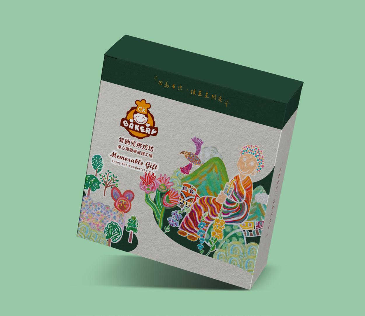此設計是為唐氏症畫家依柔與肯納兒烘焙坊的聯名禮盒,繪畫元素皆來自
