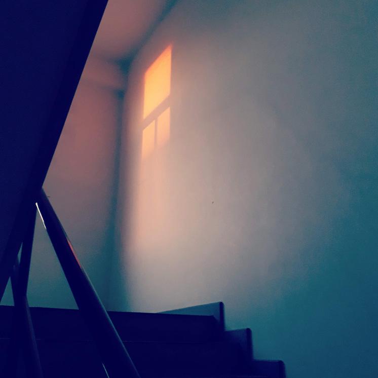 樓梯、柱子和牆面形成的半開放空間,有充足採光,平時卻只是擺放一些雜物,沒有合