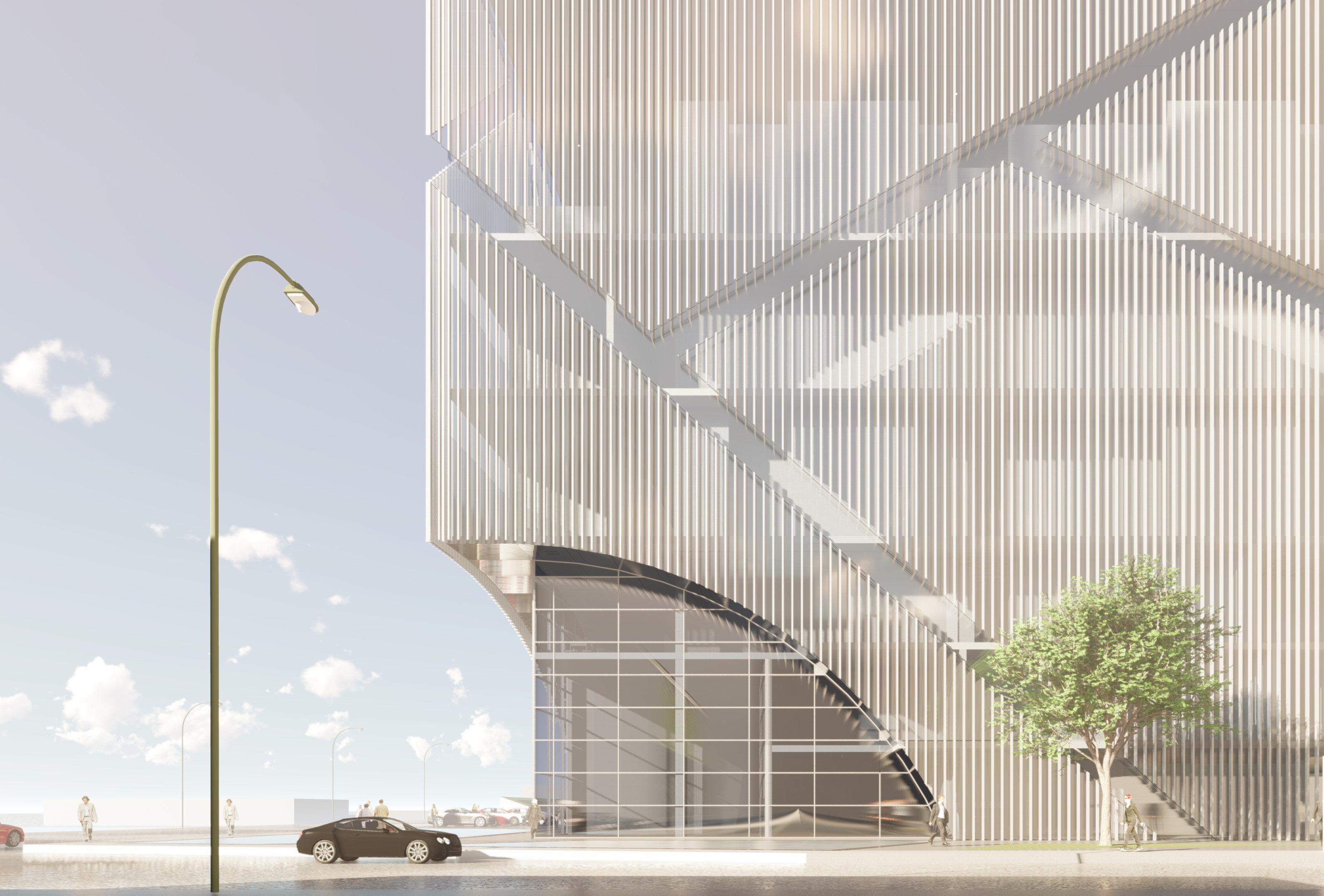 The main idea of this project is about Temper Justice with Mercy. Trying to show the harness part of the law that everybody should obey, but also the mercy part of courthouse, judge would like to listen every case's special situation then give fairly humanized results. So how to make one single unit building with two contrary expression parts becomes our main design goals. I decide to apply double-skin facade idea, the inner is transparent curtain wall, the outer is vertical metal louver panel system. During the day time, the louver system makes the building looks solid But when sky turns dark, interior light come through from inside, making the whole building looks very transparent, lighting to the whole city.