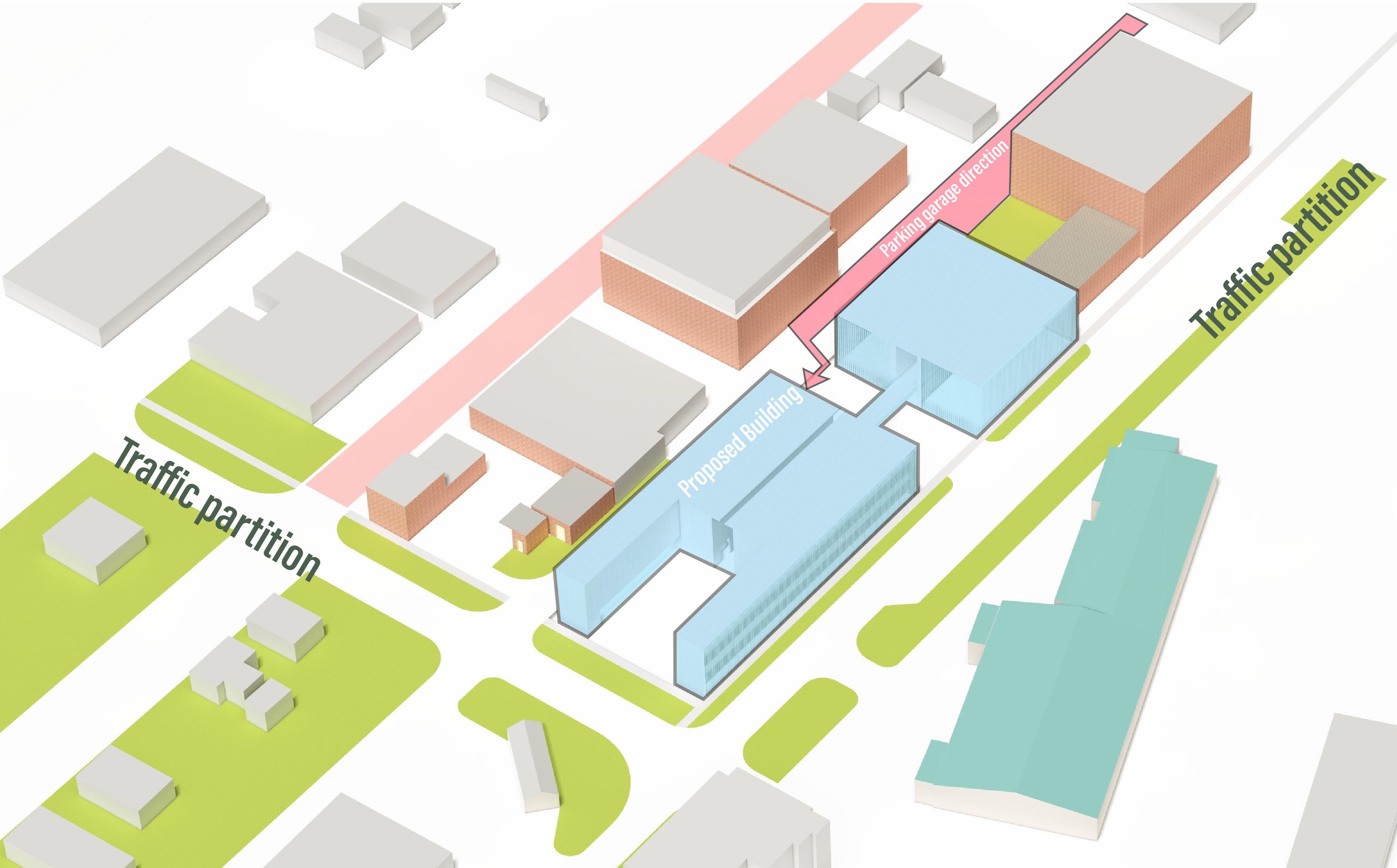 People rarely participate in this area to interact with this area, and it gradually loses its vitality. . I want to build a monumental building that reawakens life in the area. It will rule in all directions, with old streets and buildings pouring into it from all directions.