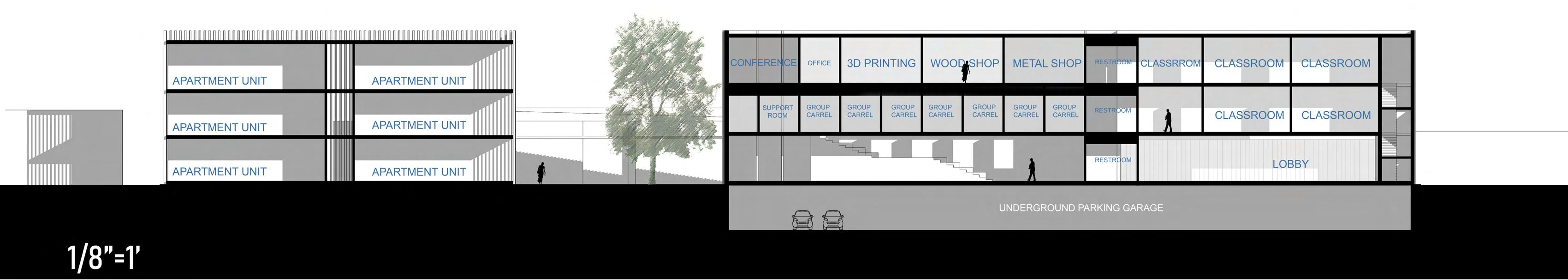 The surrounding environment of this site location is arts district. Therefore, the goal of this project is combine the arts element and leisure facility into a large space. People would be attracted by these elements and they will join in this building. The large garden in second floor is a crucial part of this building, the graden can produce ethereal atmosphere and provide a exellent space where visitor can take a rest when they tired.