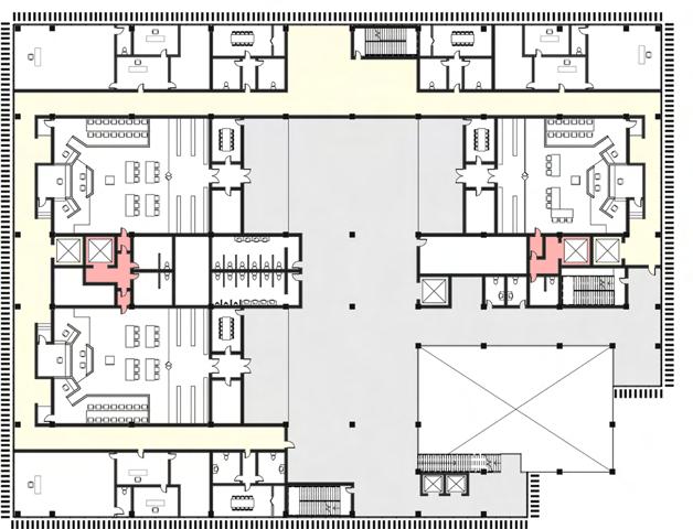 6th Floor 33,457 SQFT Business Area: 25,107 SQFT 100 net 252 ppl Public Waiting Area: 2,140 SQFT 15 net 143 ppl Courtrooms Area: 6,210 SQFT 40 net 156 ppl Occupants: 551 ppl 5th Floor 33,457 SQFT Business Area: 25,527 SQFT 100 net 256 ppl Public Waiting Area: 1,860 SQFT 15 net 124 ppl Courtrooms Area: 6,070 SQFT 40 net 152 ppl Occupants: 532 ppl 4th Floor 33,907 SQFT Business Area: 25,977 SQFT 100 net 260 ppl Public Waiting Area: 1,860 SQFT 15 net 124 ppl Courtrooms Area: 6,070 SQFT 40 net 152 ppl Occupants: 536 ppl 3rd Floor Business Area: 32,747 SQFT 100 net 328 ppl Occupants: 328 ppl 2nd Floor Business Area: 31,112 SQFT 100 net 312 ppl Occupants: 312 ppl 1st Floor Business Area: 35,640 SQFT 100 net 357 ppl Occupants: 357 ppl 3 Vertical Egress Staircase Egress Width 15ft Total Egress Check Diagram Mechanical Axonometric Structure Axonometric